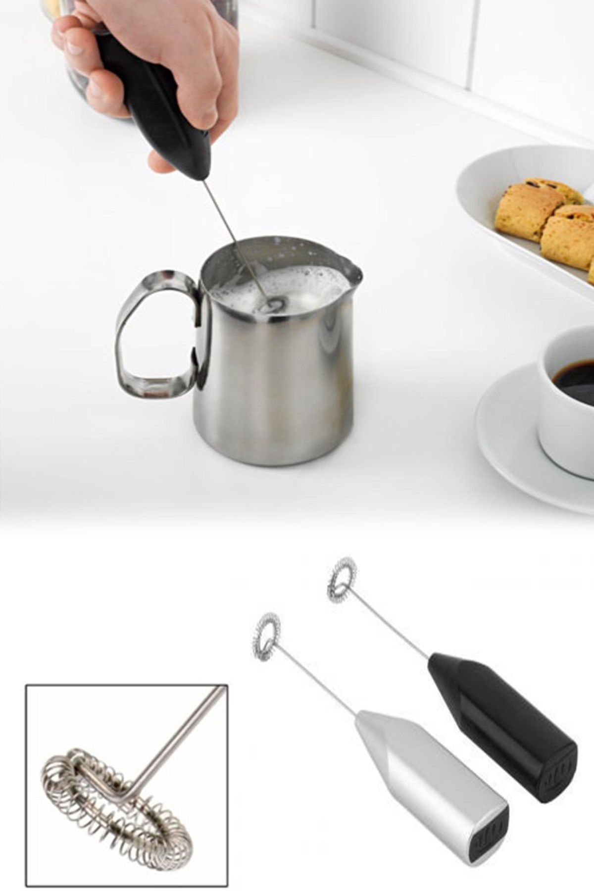 El Çırpıcısı Pilli Mini Portatif Mutfak Mikseri Köpürtme Aleti