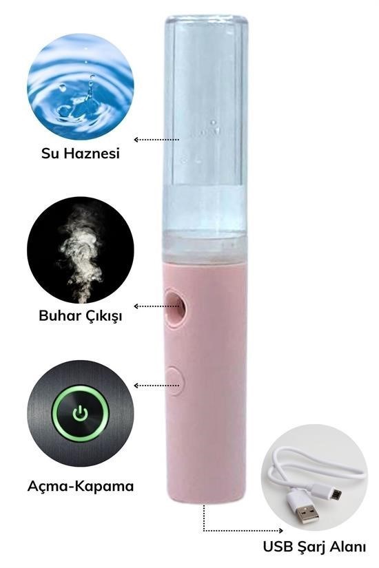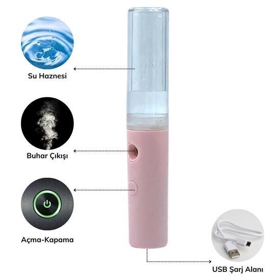 BUFFER® Kalem Boy El Tipi Taşınabilir Hava Nemlendirici Sprey USB Şarj Kablolu Mini Sprey Buhar Püskürtücü Nemlendirici Yüz Spreyi