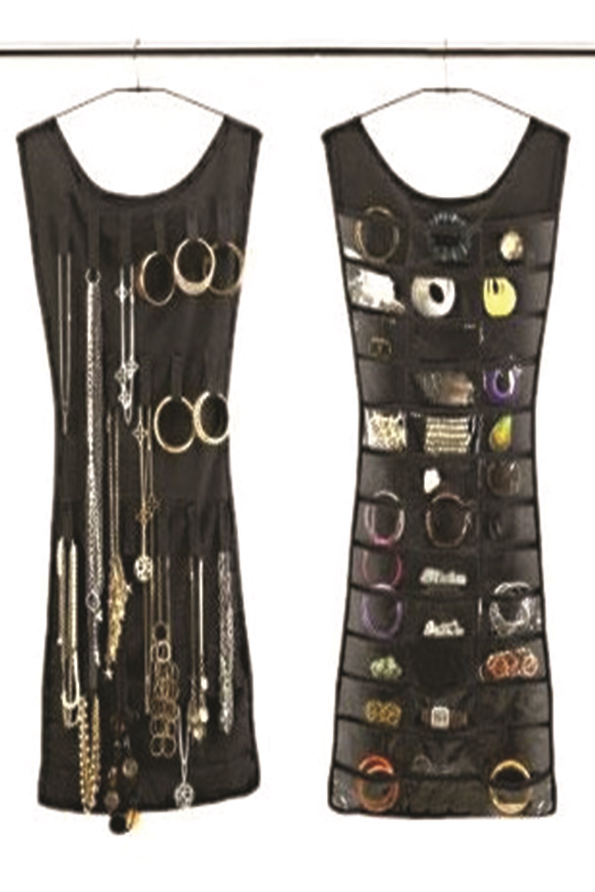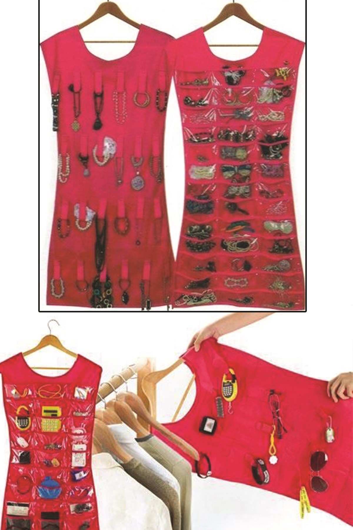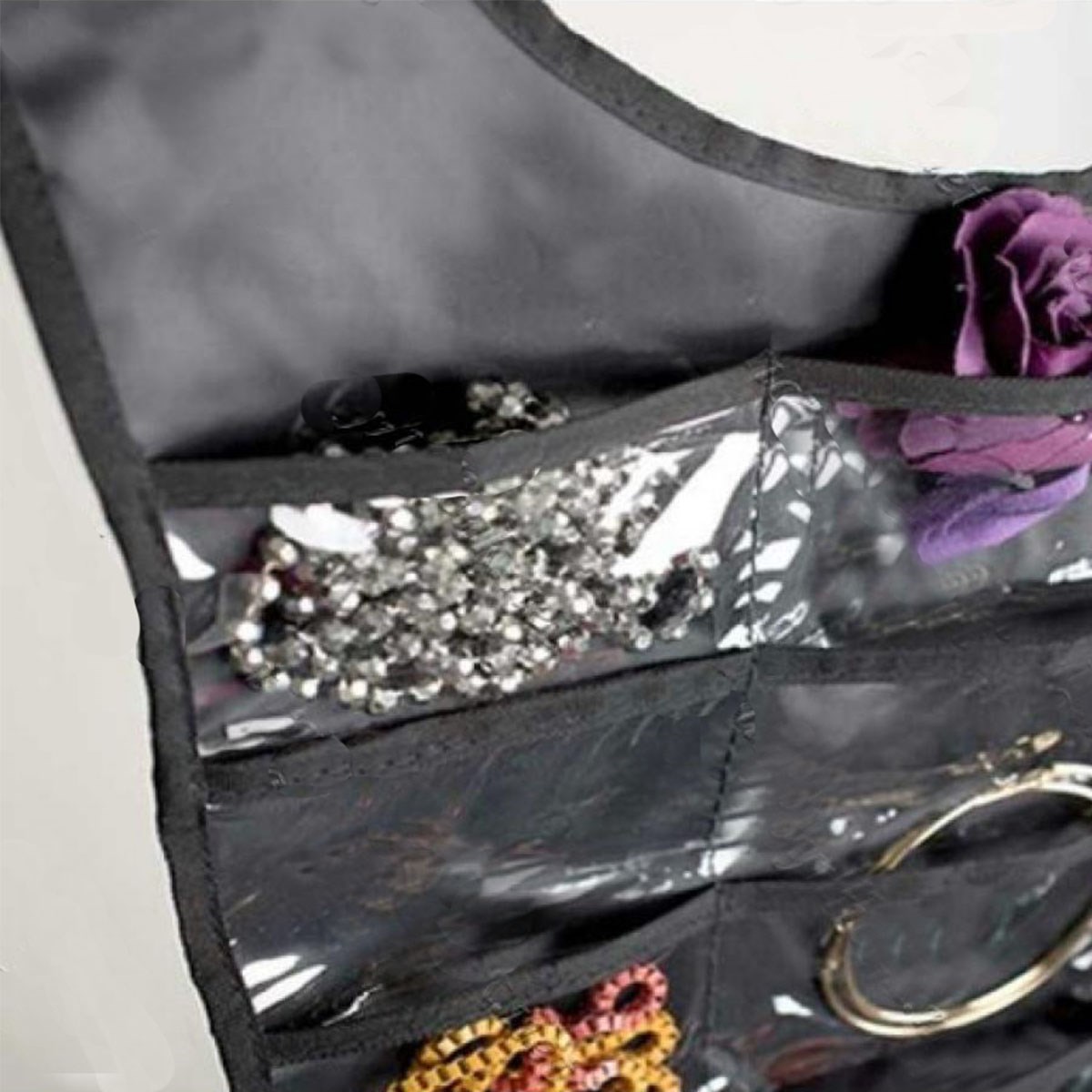 -Böylece bir tarafta açık cepler ve diğer asılı döngüler ile kolayca takı koleksiyonunu görebilirsiniz