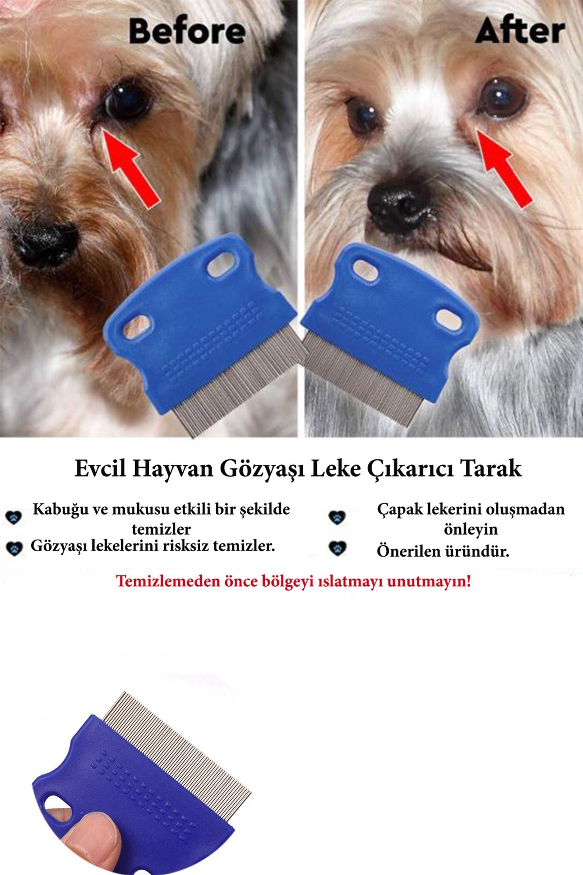 BUFFER® Evcil Hayvan Kedi Köpek Pire Tarağı ve Köpek Gözyaşı Lekesi Tarağı