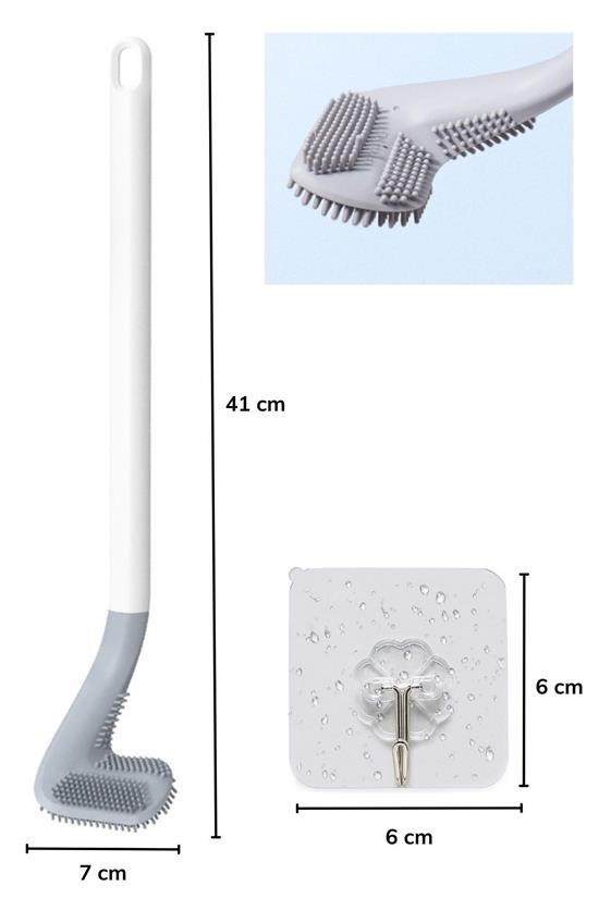 Yüksek kaliteli silikon malzemelerden yapılmış fırçanın tırtıkları klozete ve fayansa zarar vermez iz bırakmaz Saç veya kıl gibi maddelerin dolaşmasına elverişli olmadığı için temizliği kolaydır