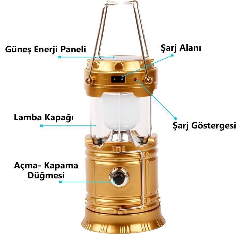 Solar Güneş Enerjili Şarjlı Kamp Lambası Feneri Işıldak Özellikleri: