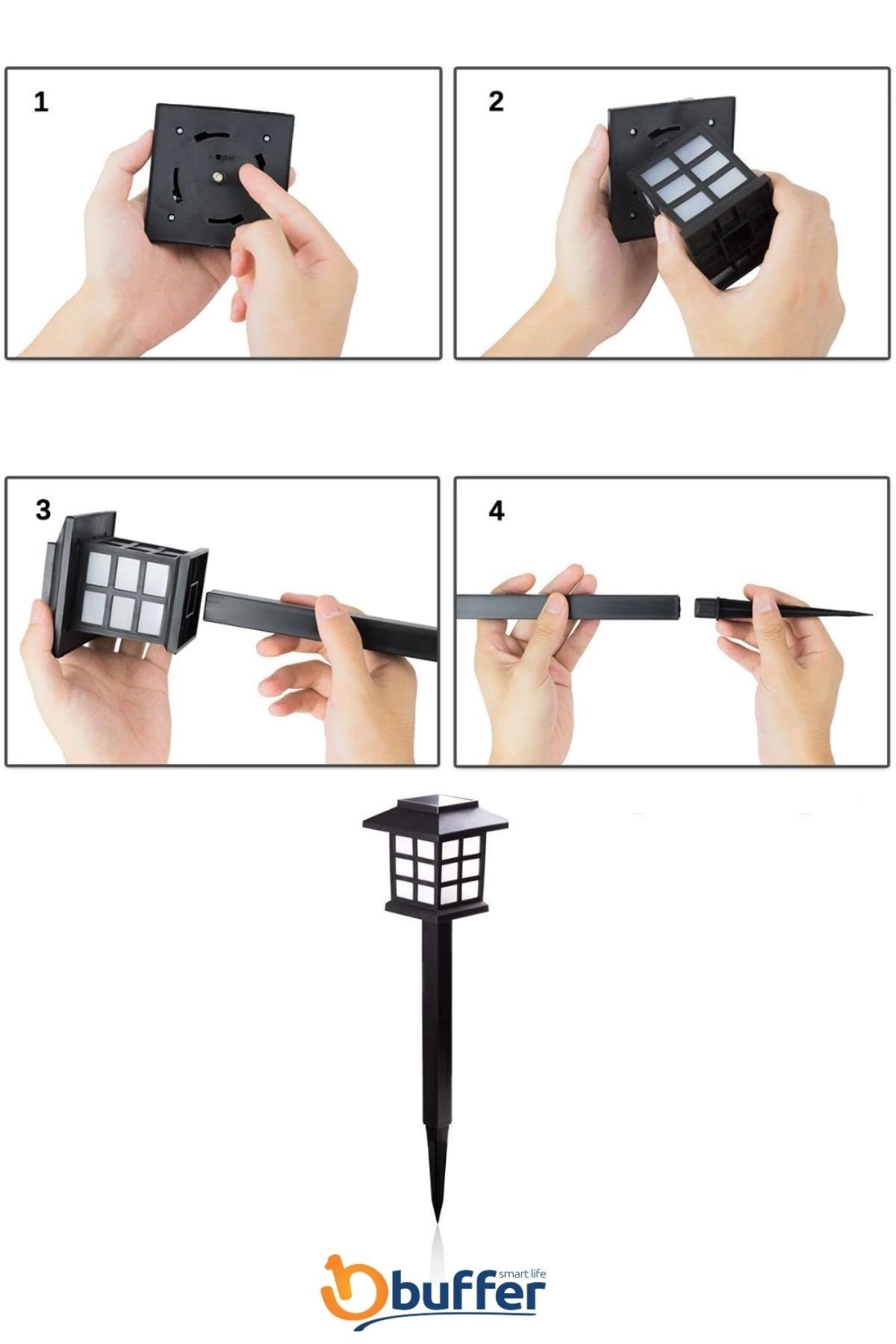 BUFFER® Güneş Enerjili Sokak Lamba Tasarımlı Solar Bahçe Aydınlatması