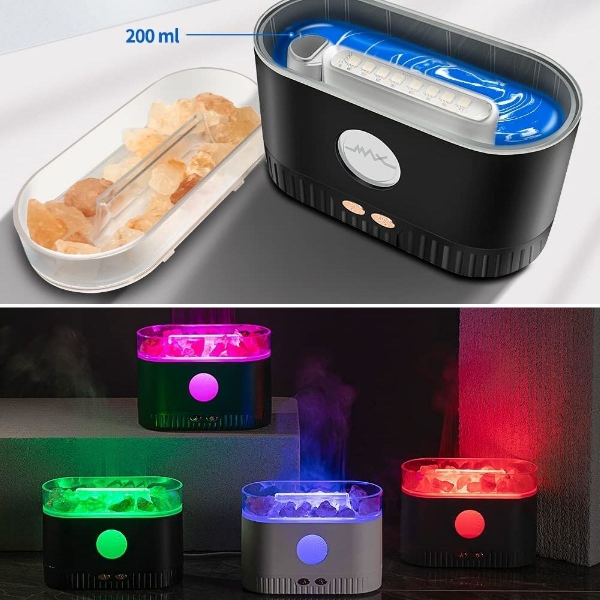 BUFFER® Himalaya Tuzlu Renkli Led Aydınlatmalı Uzun Süre Nemlendirme Etkili 200ml Hava Nemlendiricili Aromaterapi Difüzörü