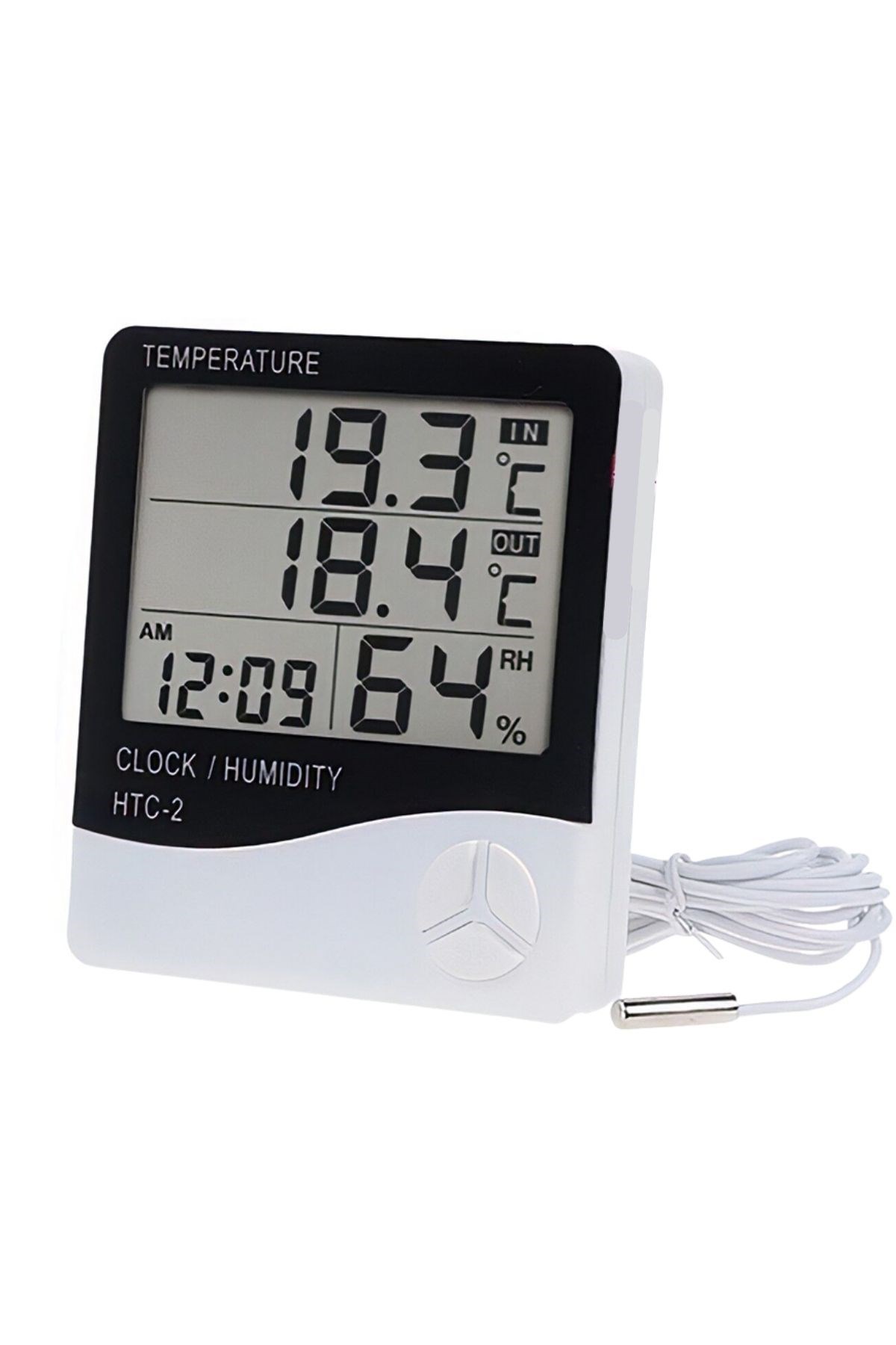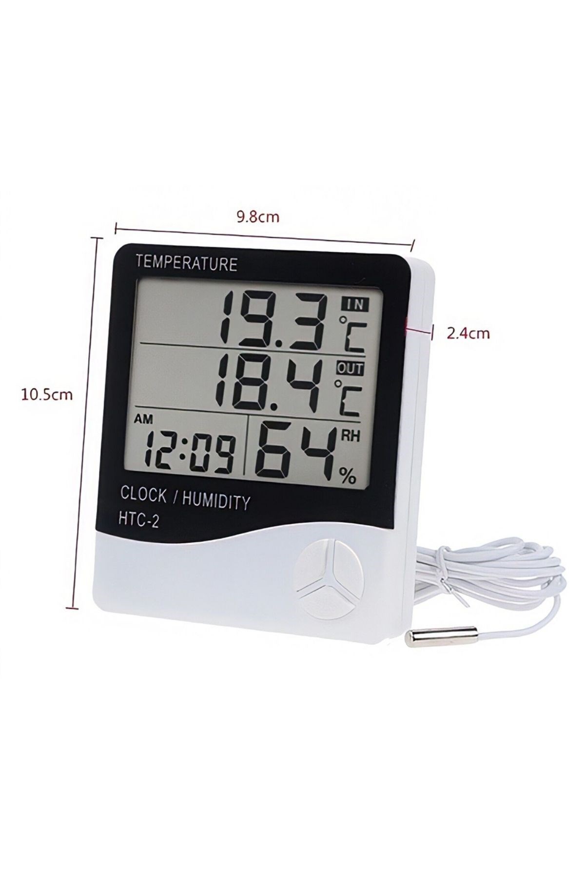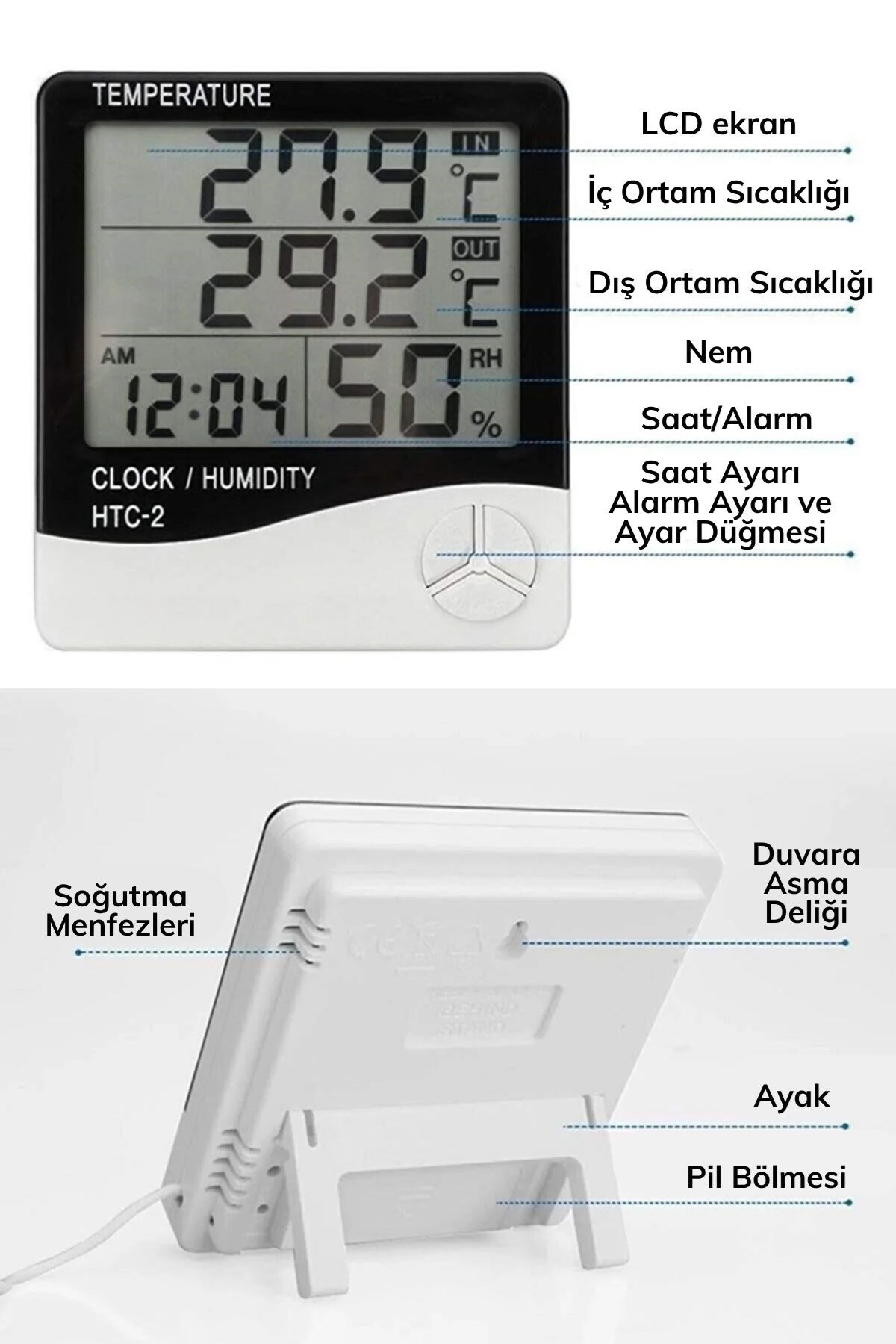 BUFFER® İç Ortam ve Dış Ortam Sıcaklığını Ölçebilen LCD Ekranlı Saat Göstergeli Alarmlı Nem Ölçer Masa Üstü Termometre