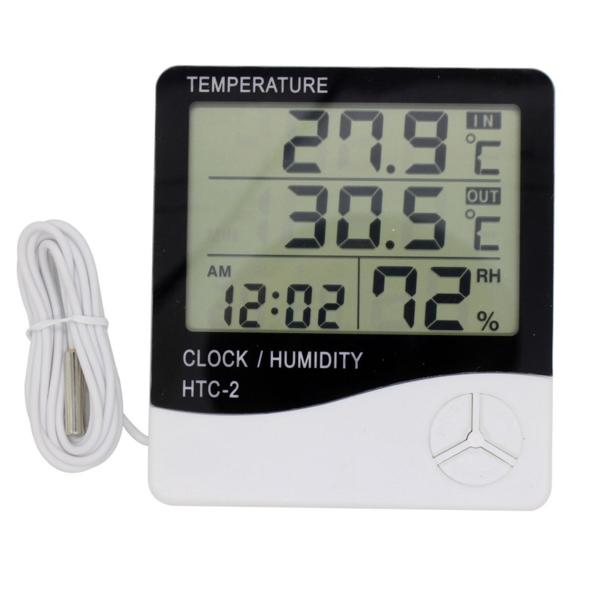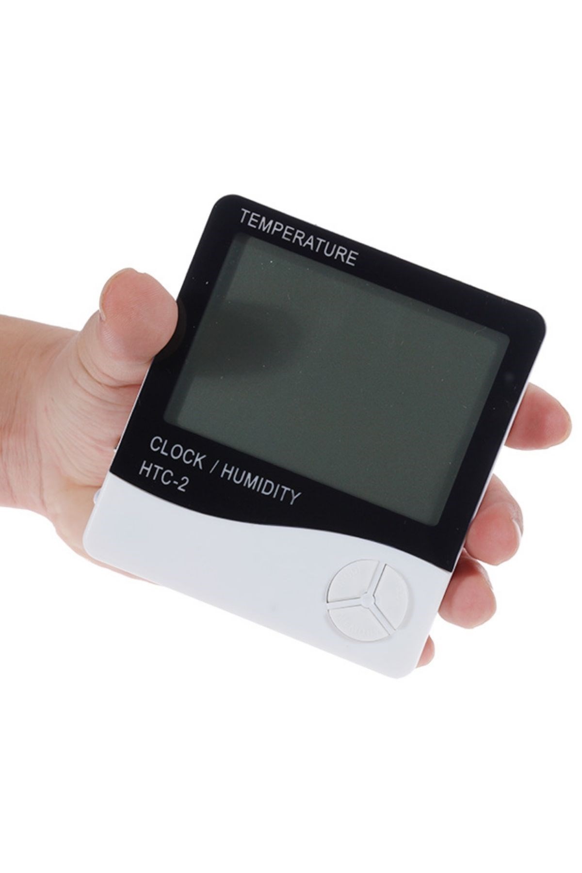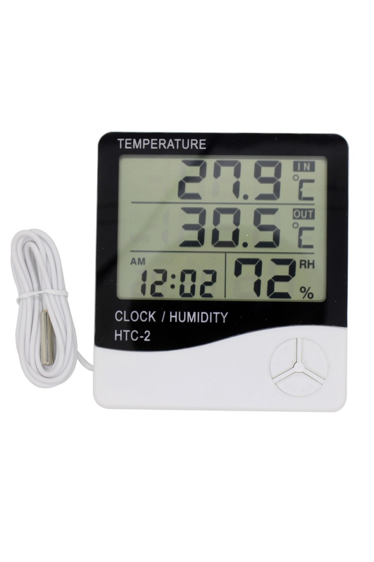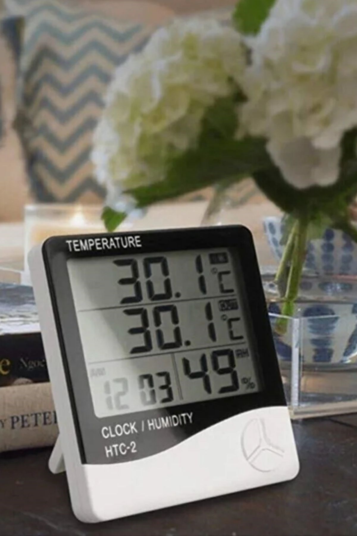 BUFFER® İç Ortam ve Dış Ortam Sıcaklığını Ölçebilen LCD Ekranlı Saat Göstergeli Alarmlı Nem Ölçer Masa Üstü Termometre