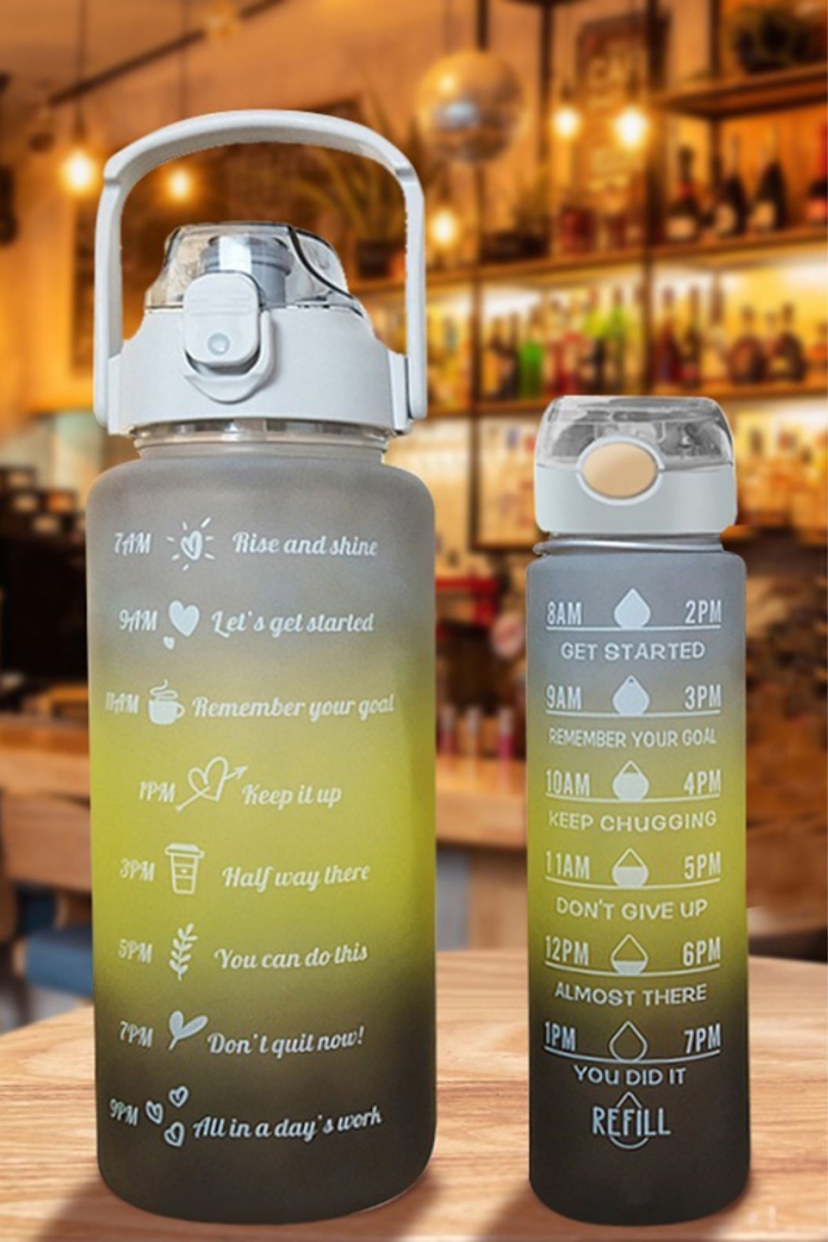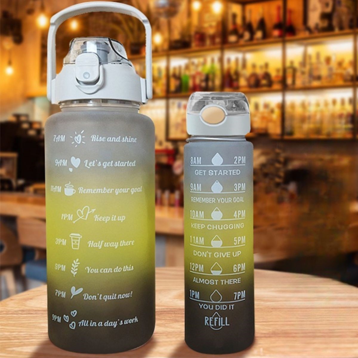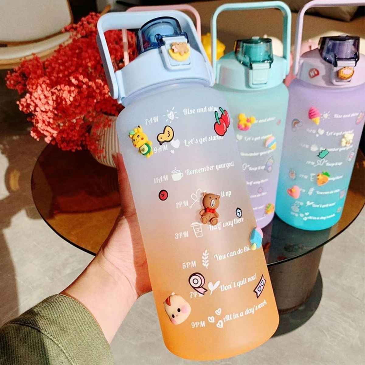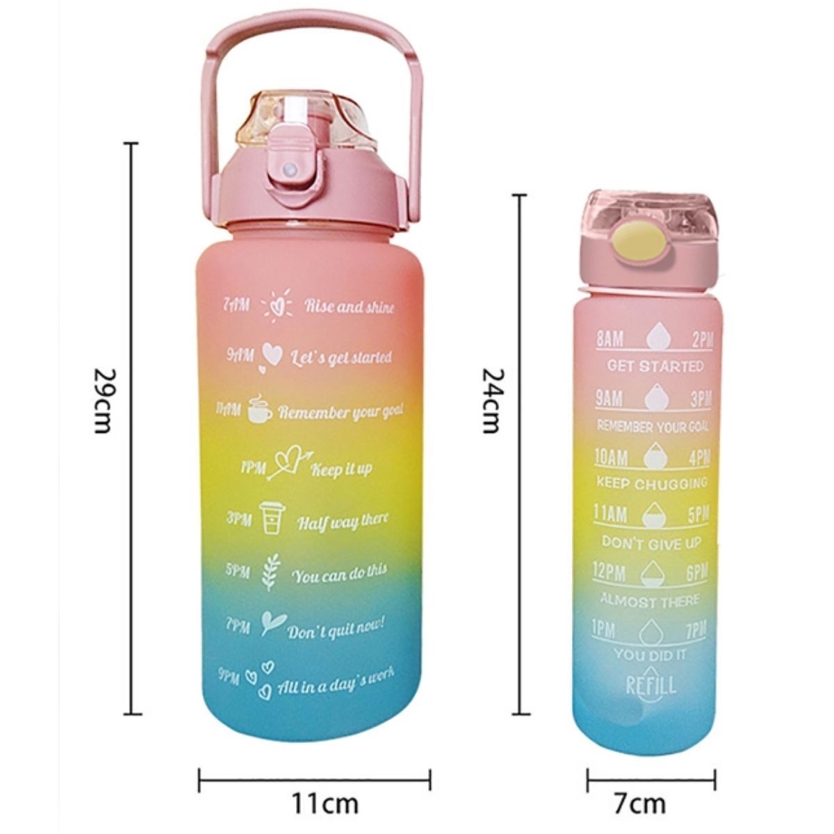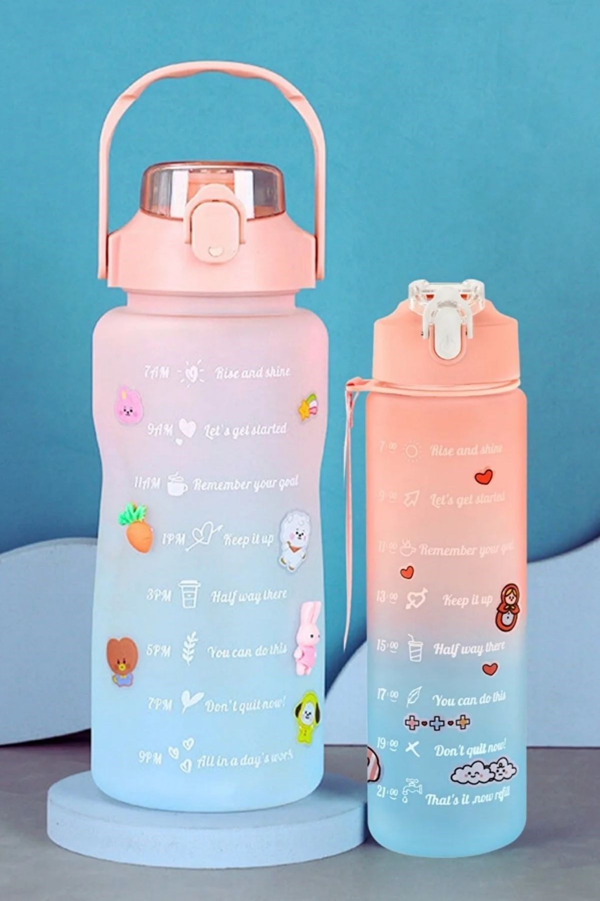 BUFFER® İkili 2 Lt + 0,9 Lt Motivasyon Su Şişesi Sızdırmaz Dayanıklı Kapaklı Şık Tasarımlı Renkli 3d ve 2d Sticker Hediyeli Su Matarası