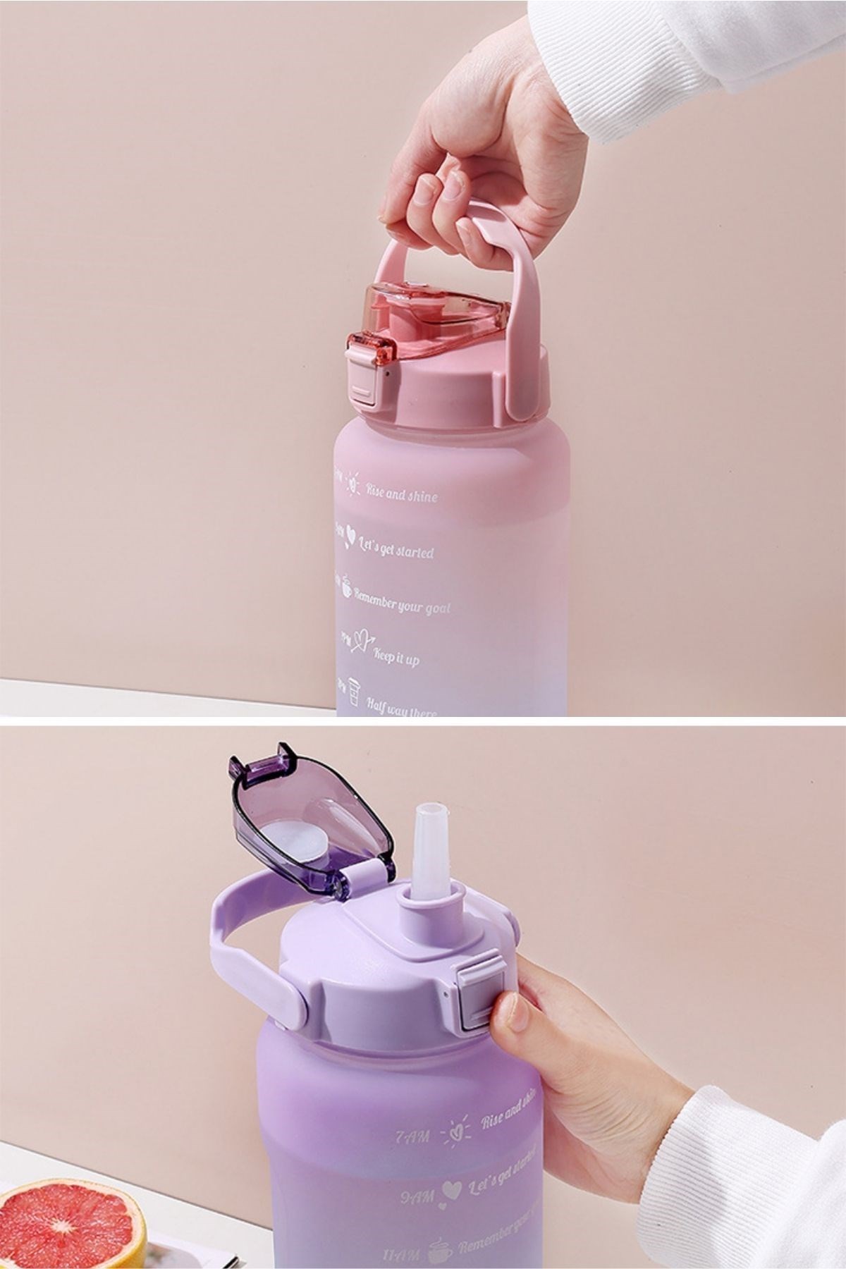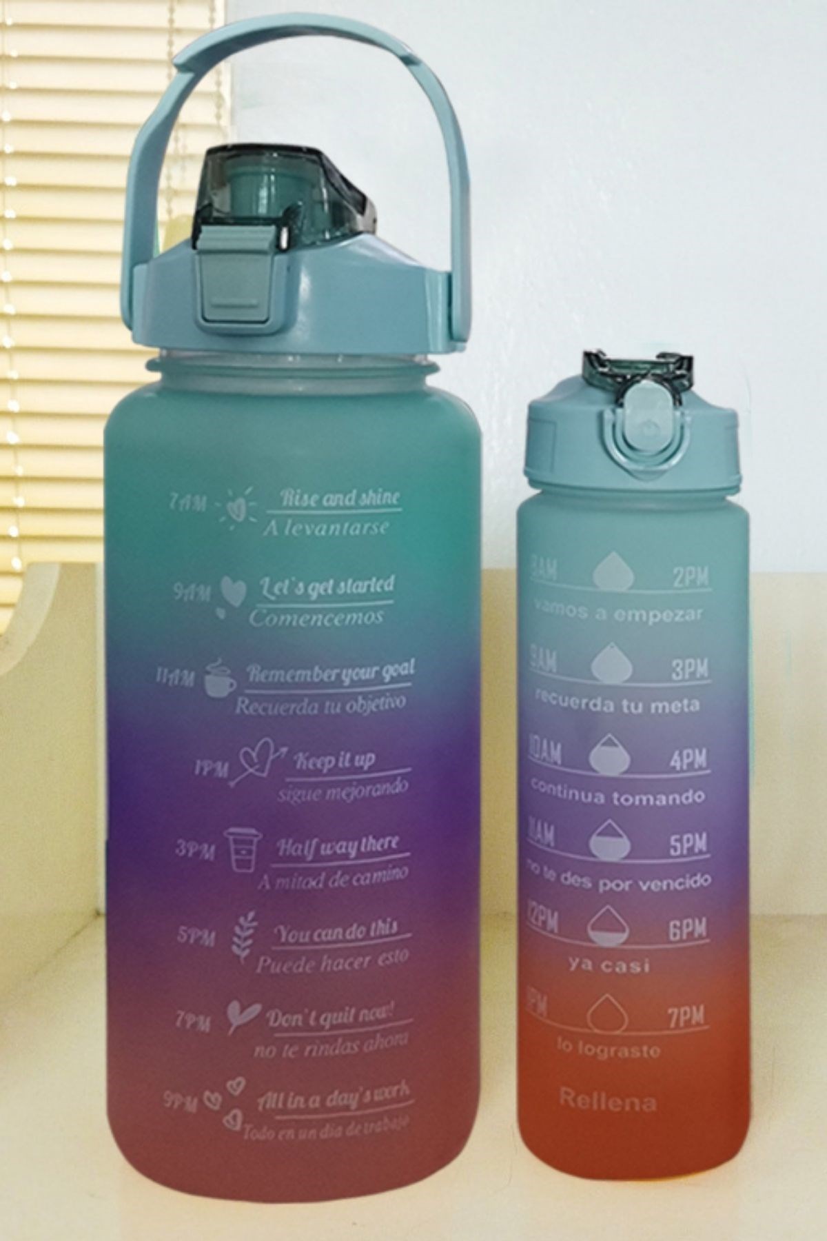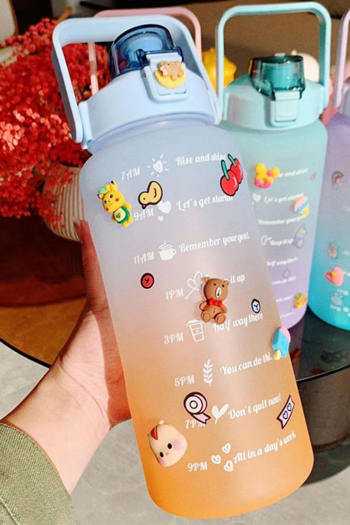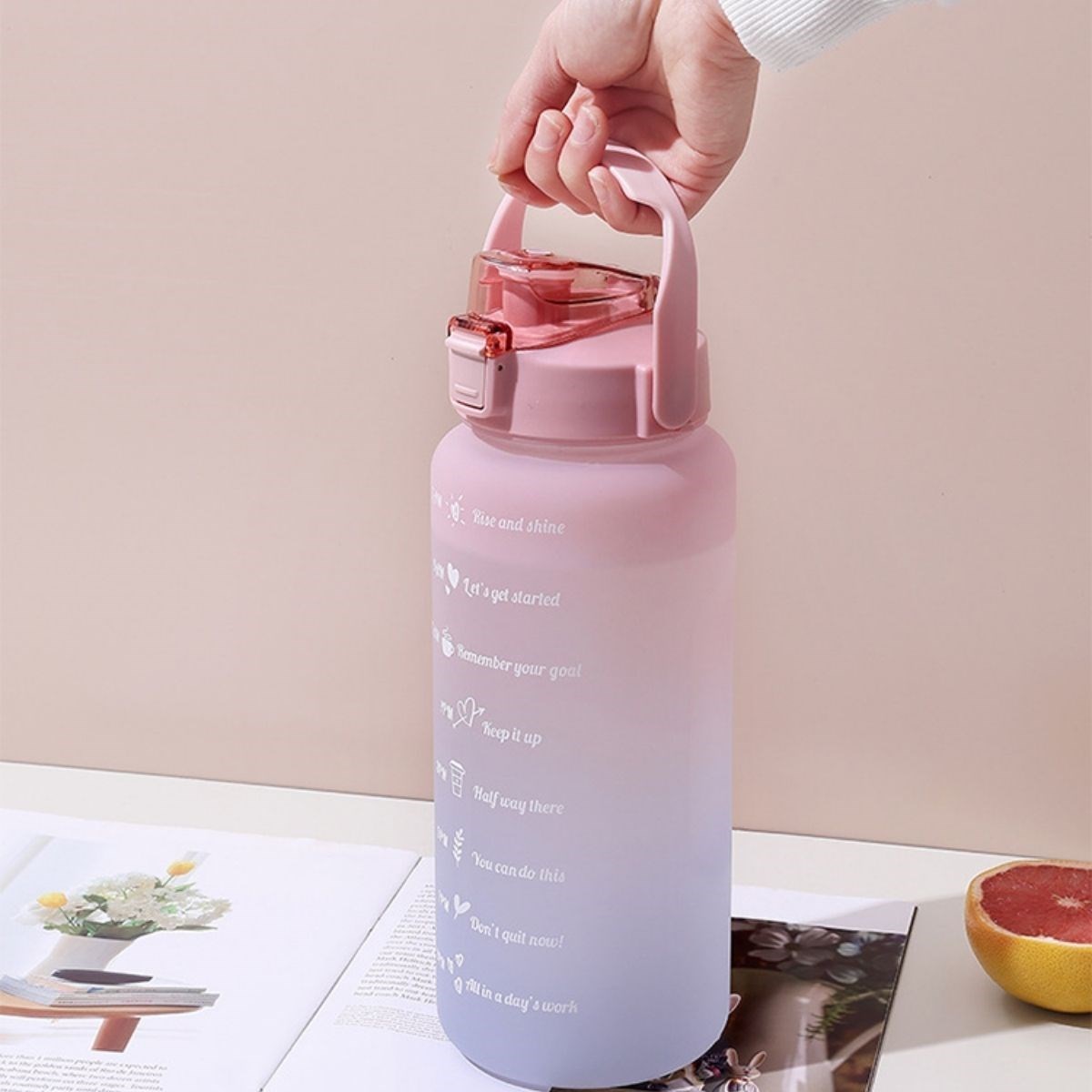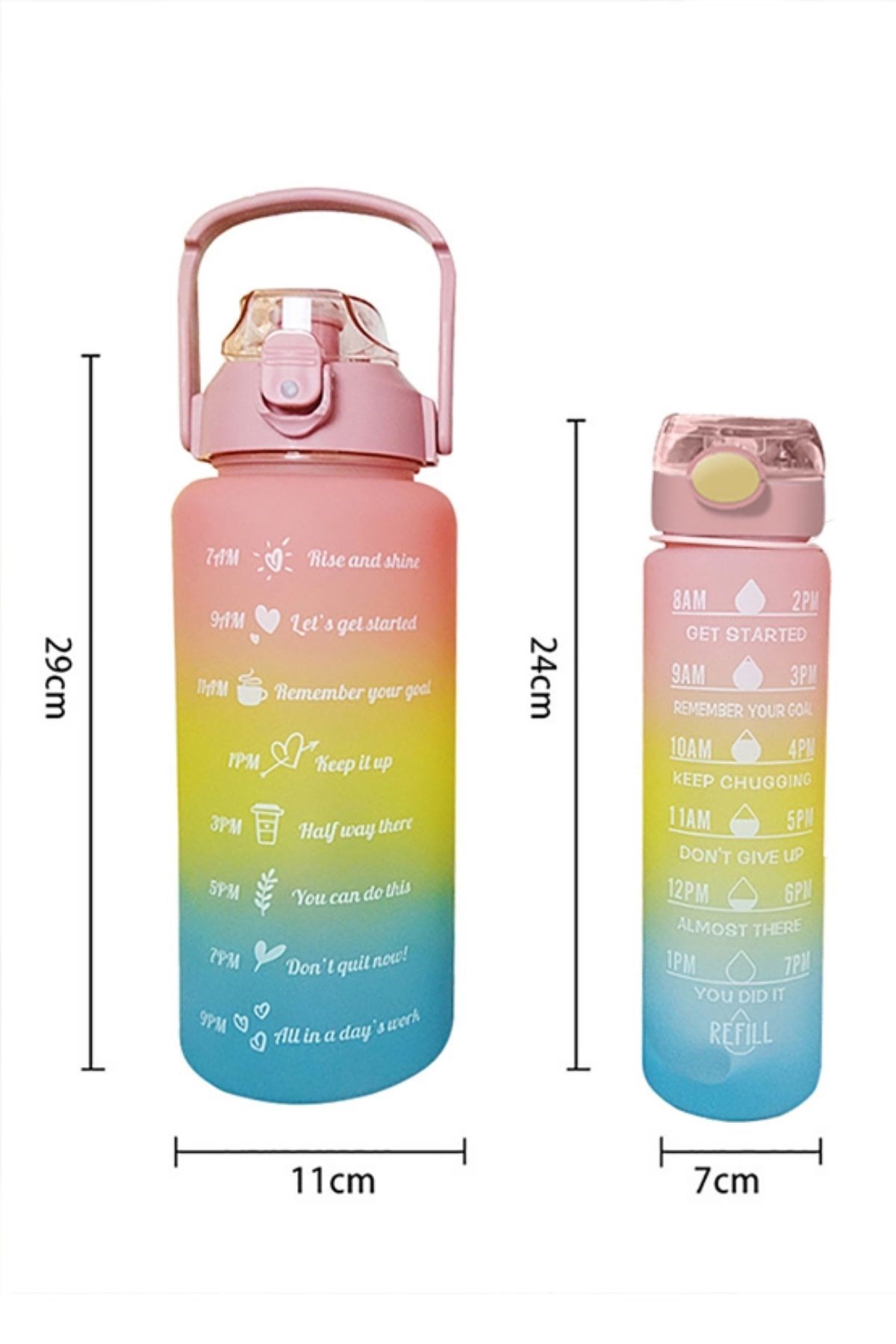 BUFFER® İkili 2 Lt + 0,9 Lt Motivasyon Su Şişesi Sızdırmaz Dayanıklı Kapaklı Şık Tasarımlı Renkli 3d ve 2d Sticker Hediyeli Su Matarası