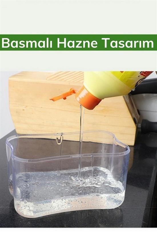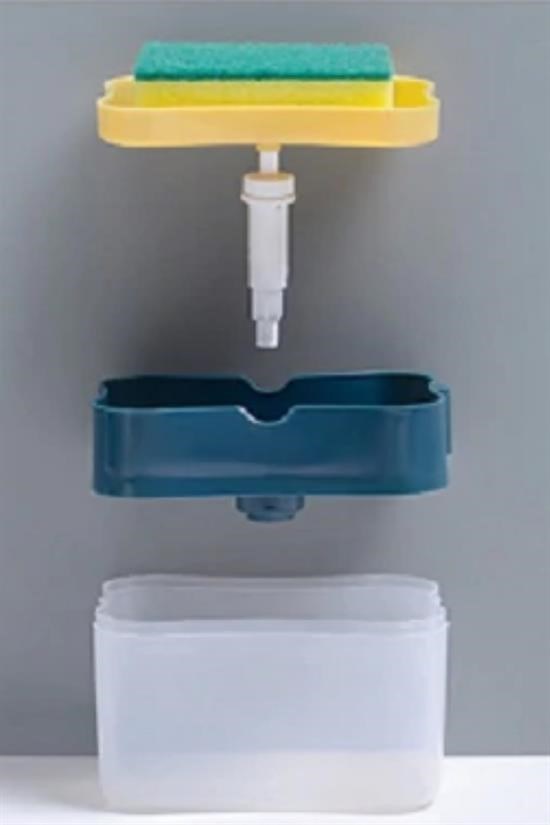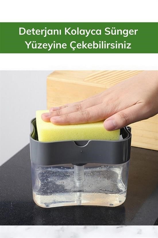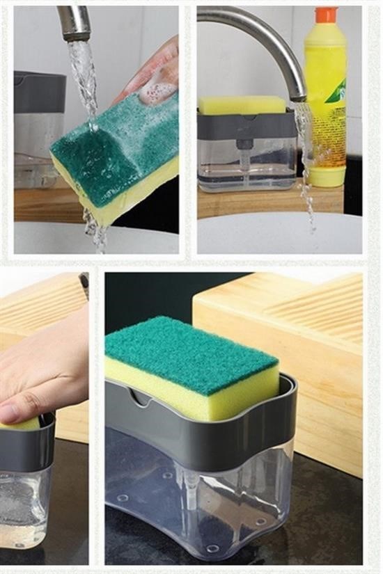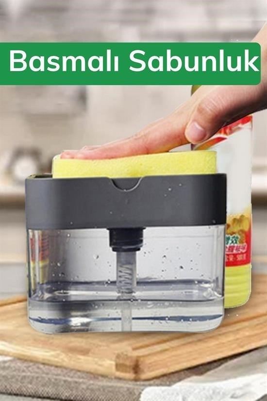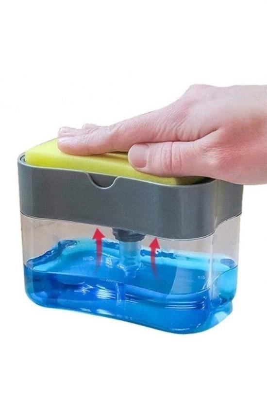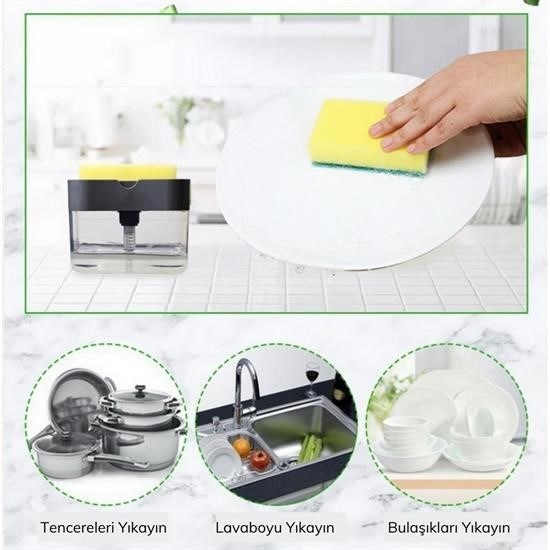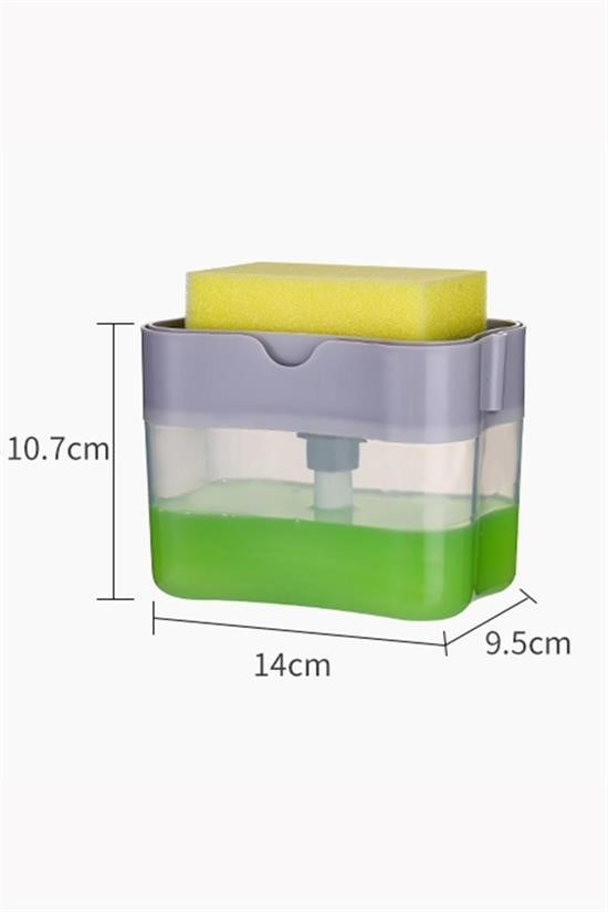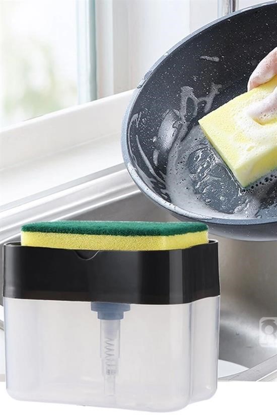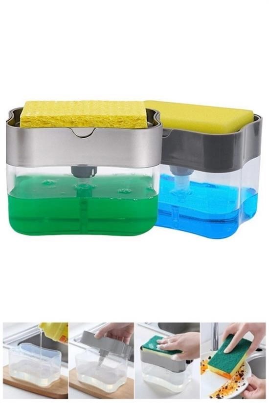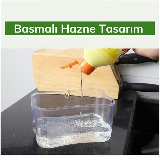 <>Buffer İkisi Bir Arada Basmalı Pratik Sıvı Sabunluk Pompası ve Bulaşık Yıkama Süngeri Haznesi