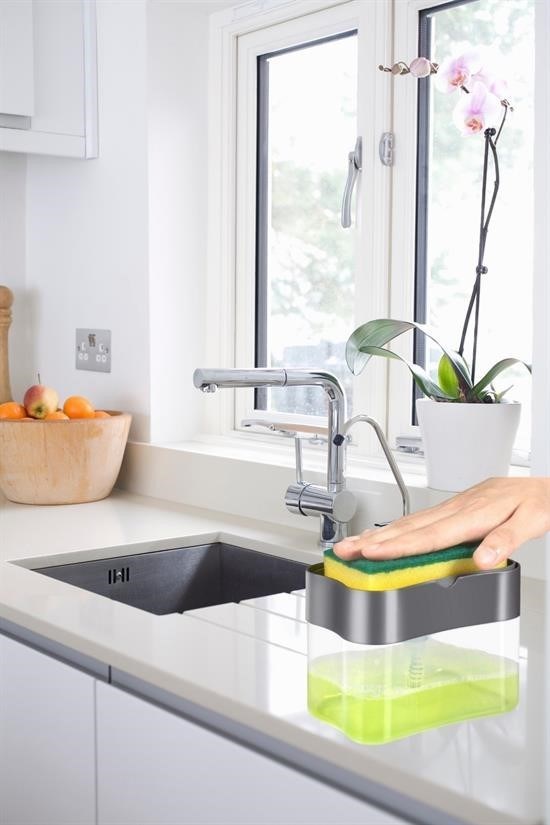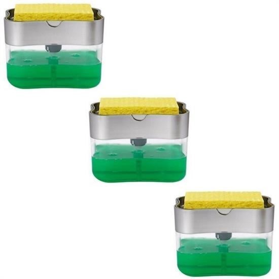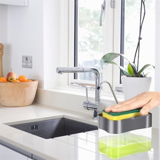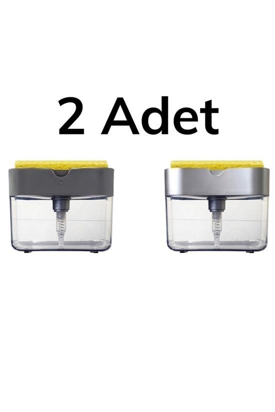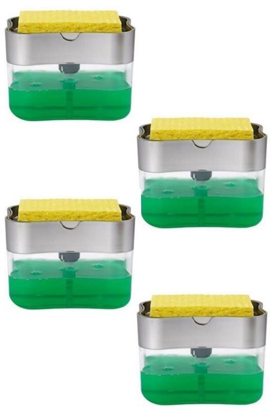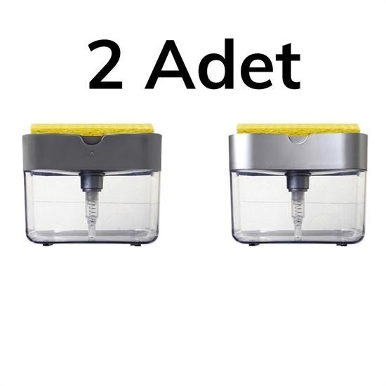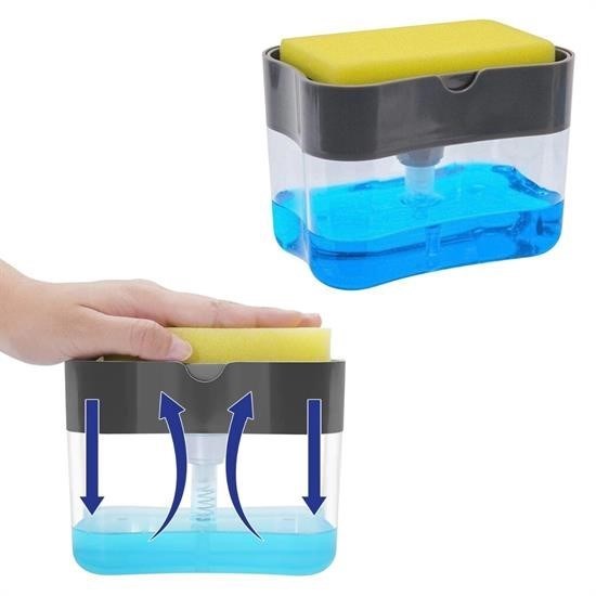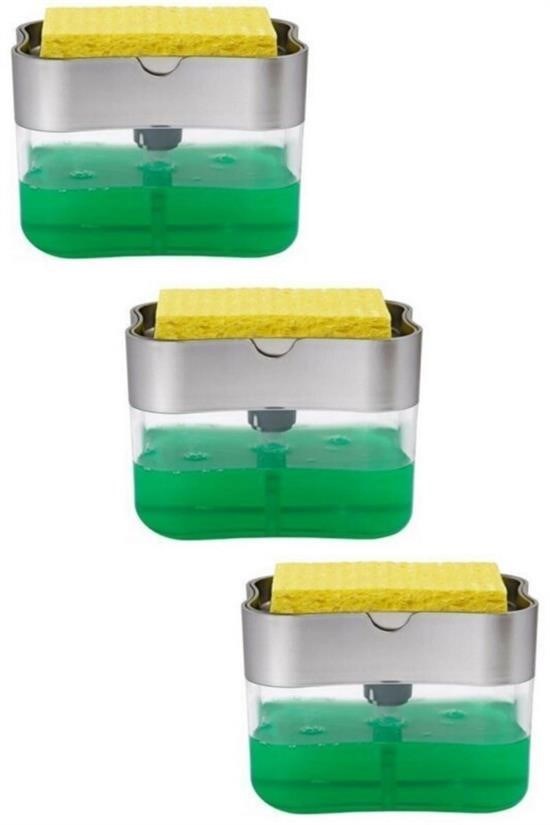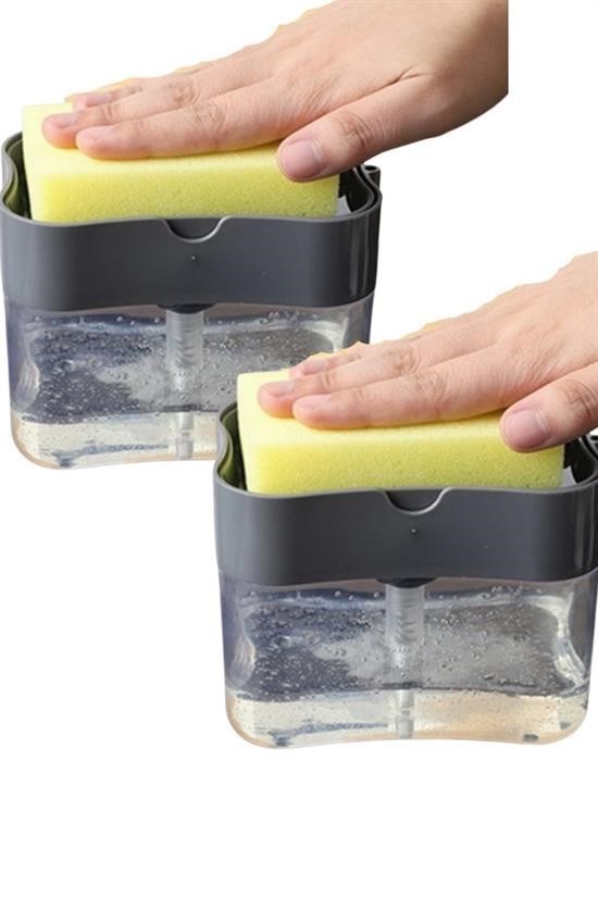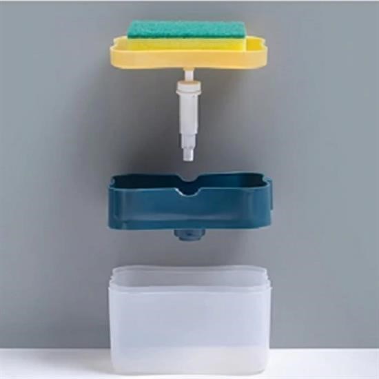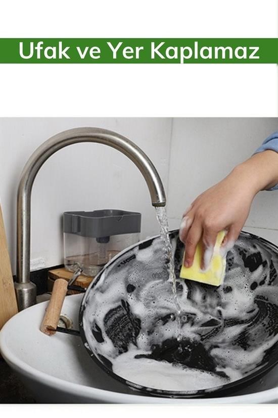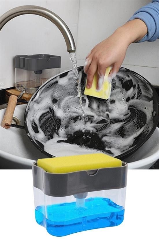 <>Buffer İkisi Bir Arada Basmalı Pratik Sıvı Sabunluk Pompası ve Bulaşık Yıkama Süngeri Haznesi