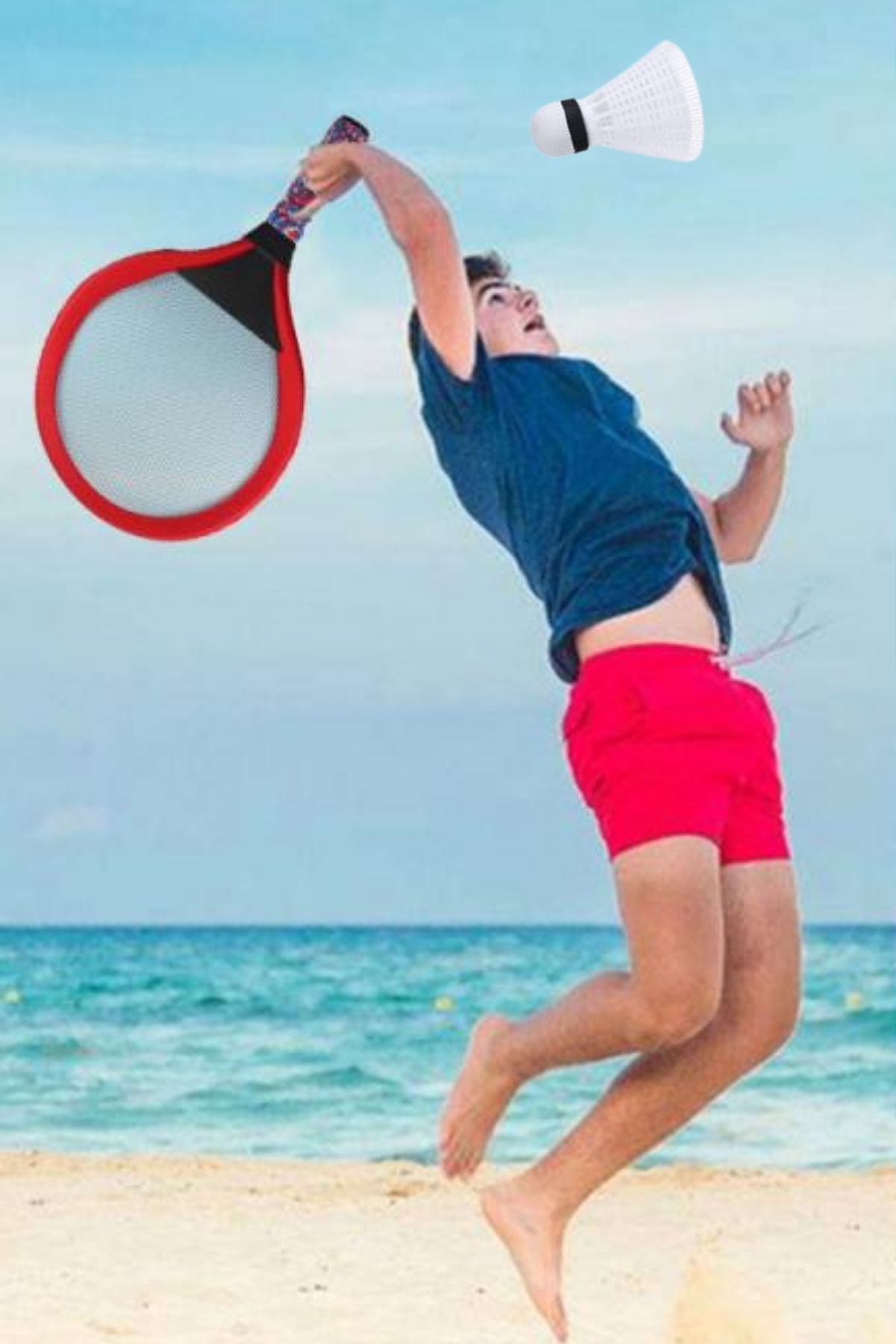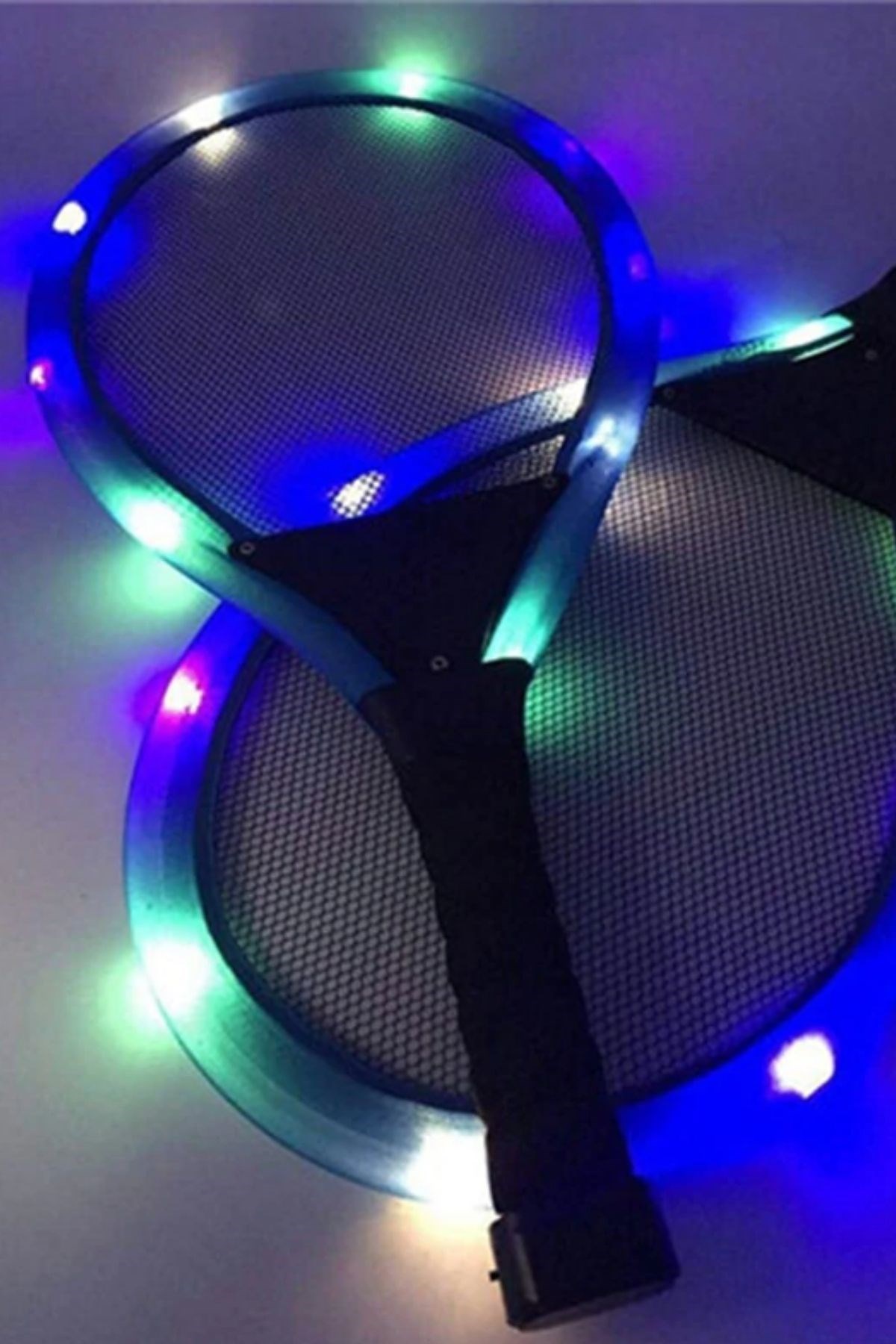 BUFFER® Işıklı Badminton Seti Hafif Portatif Taşınabilir Fileli Işıklı Raket Işıklı Topu Dahil
