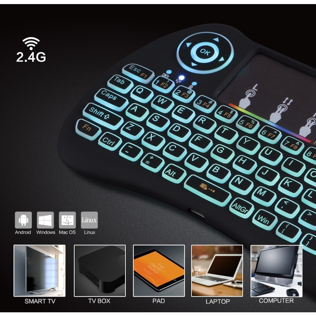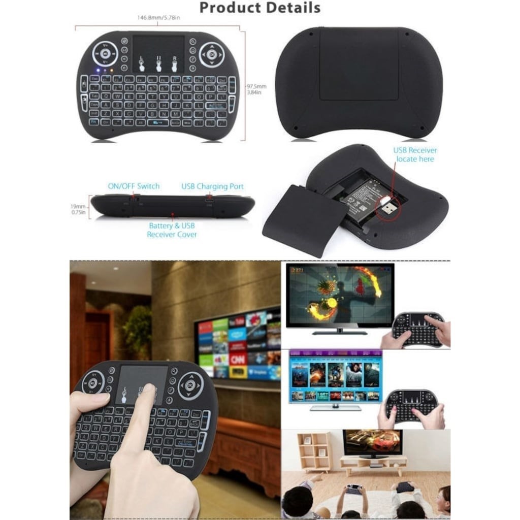 BUFFER® Işıklı Kablosuz Şarjlı Mini Türkçe Q Klavye Smart TV PS3 Dokunmatik Mouse
