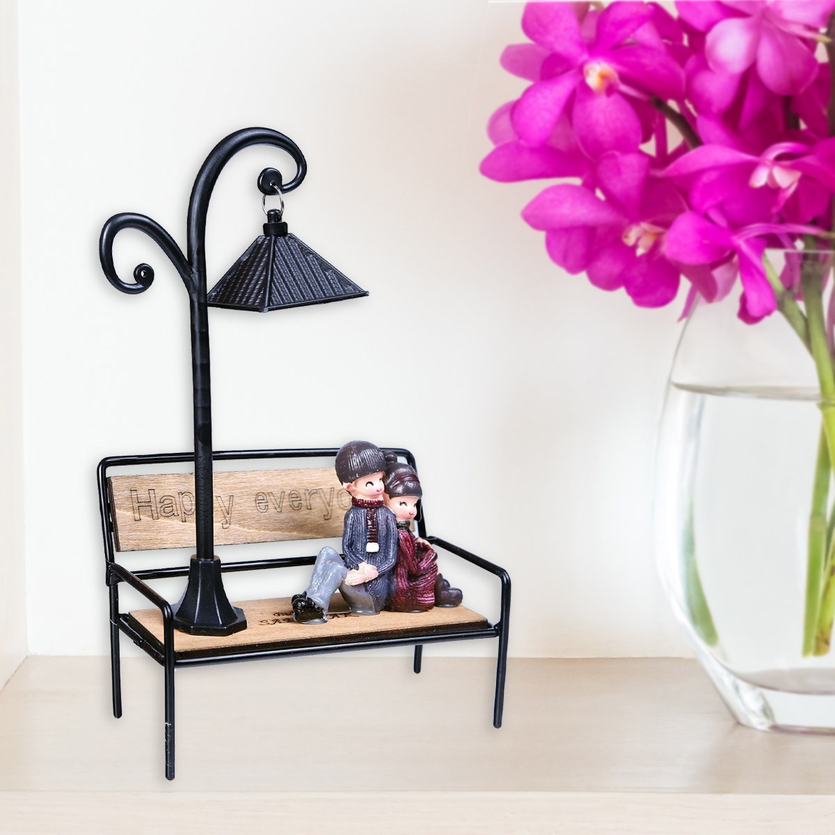 BUFFER® Işıklı Sokak Lambası Altında Oturan Sevimli Çift Temalı Biblo