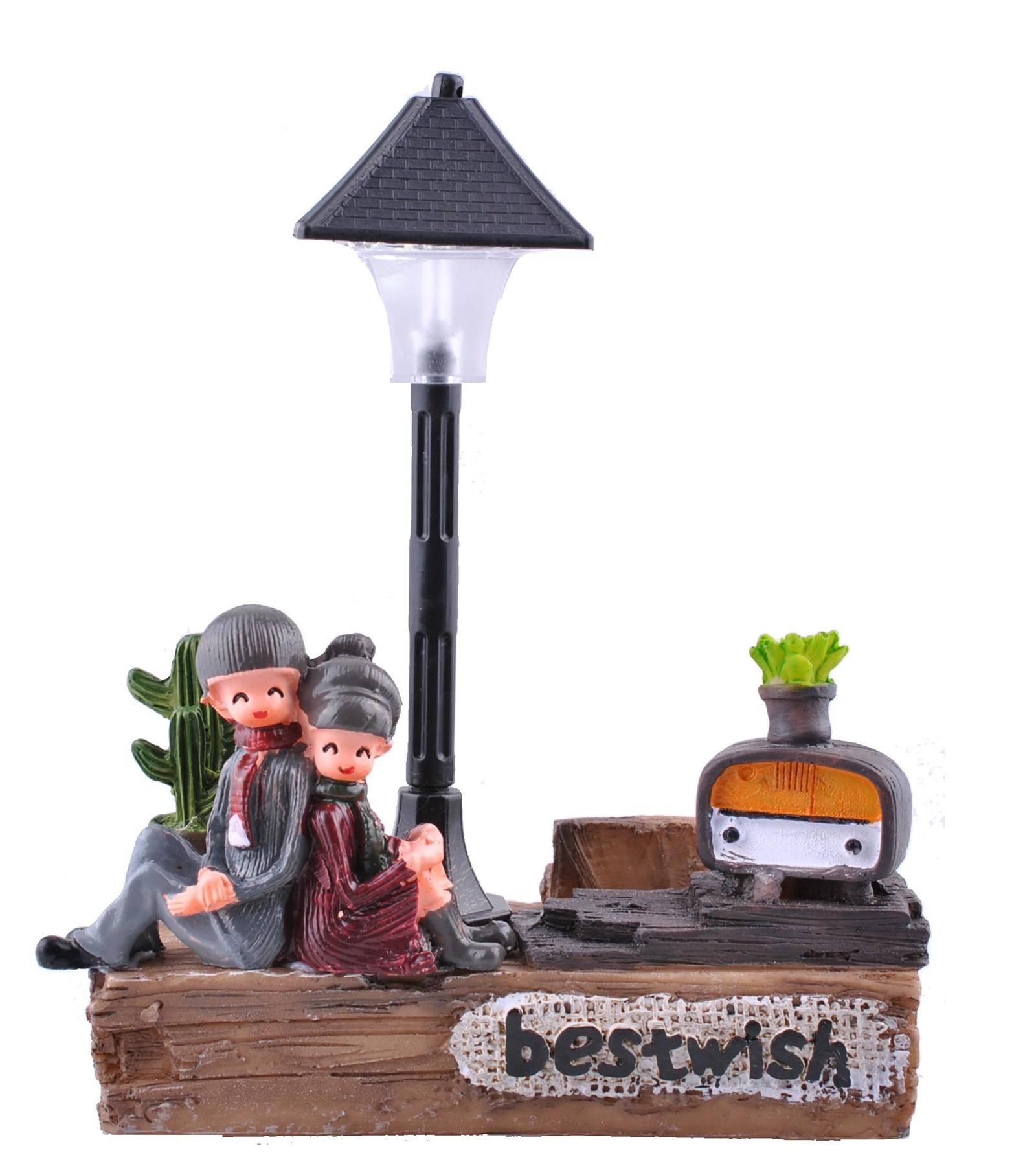 BUFFER® Işıklı Sokak Lambası Altında Oturan Sevimli Çift Temalı Biblo