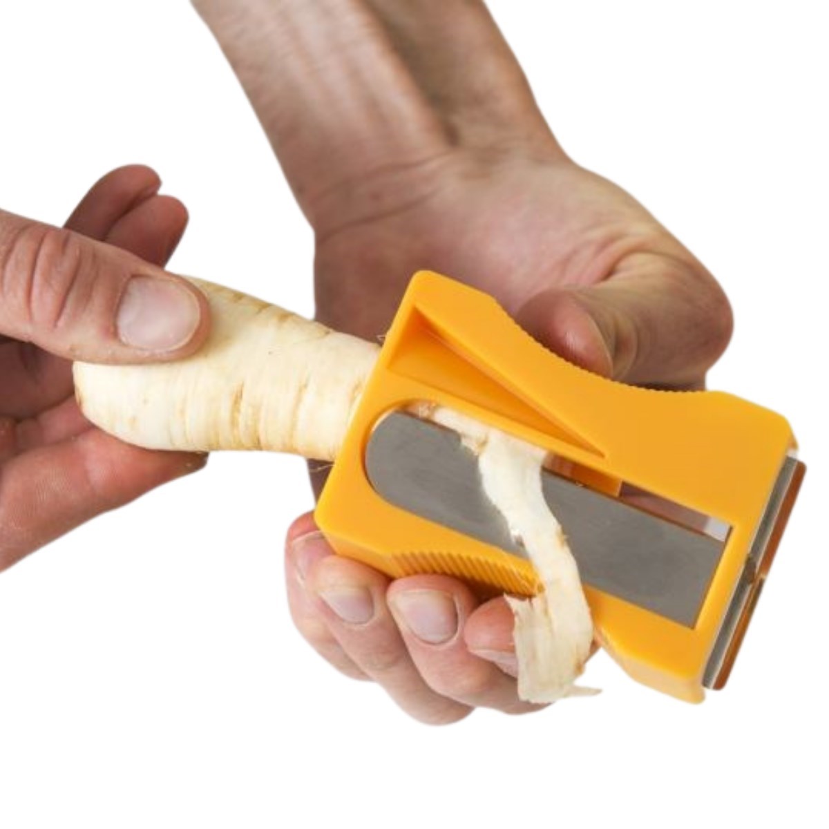 İşte bu anlamda üretilmiş bir ürün olan Kalemtraş Şeklinde Paslanmaz Çelik Havuç Soyacağı, havuç, kabak, salatalık ve diğer benzer şekilli sebzeler için tasarlanmıştır