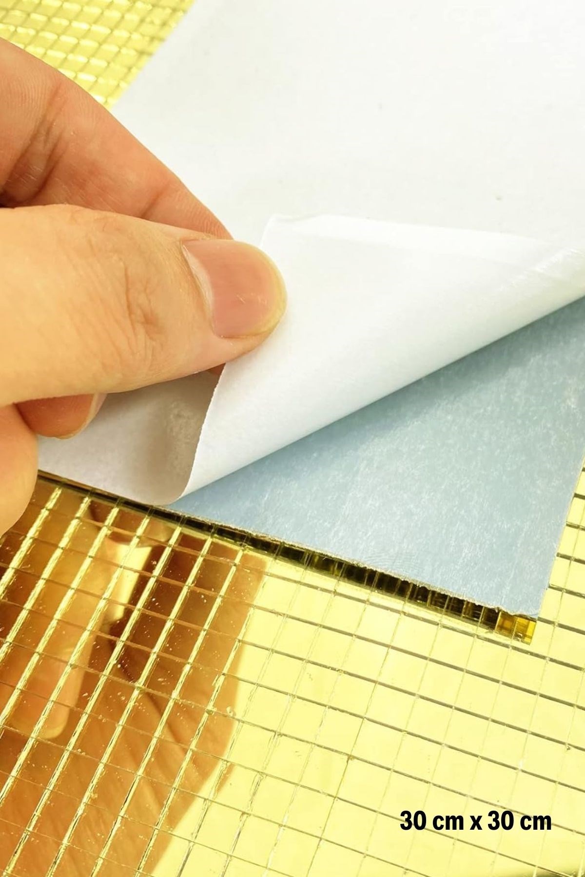 BUFFER® Kare Gold Cam Mozaik Fayans Çıkartmaları El İşi Kare Cam Fayans Kendinden Yapışkanl Aynalı Dekor Panel 30x30 Cm