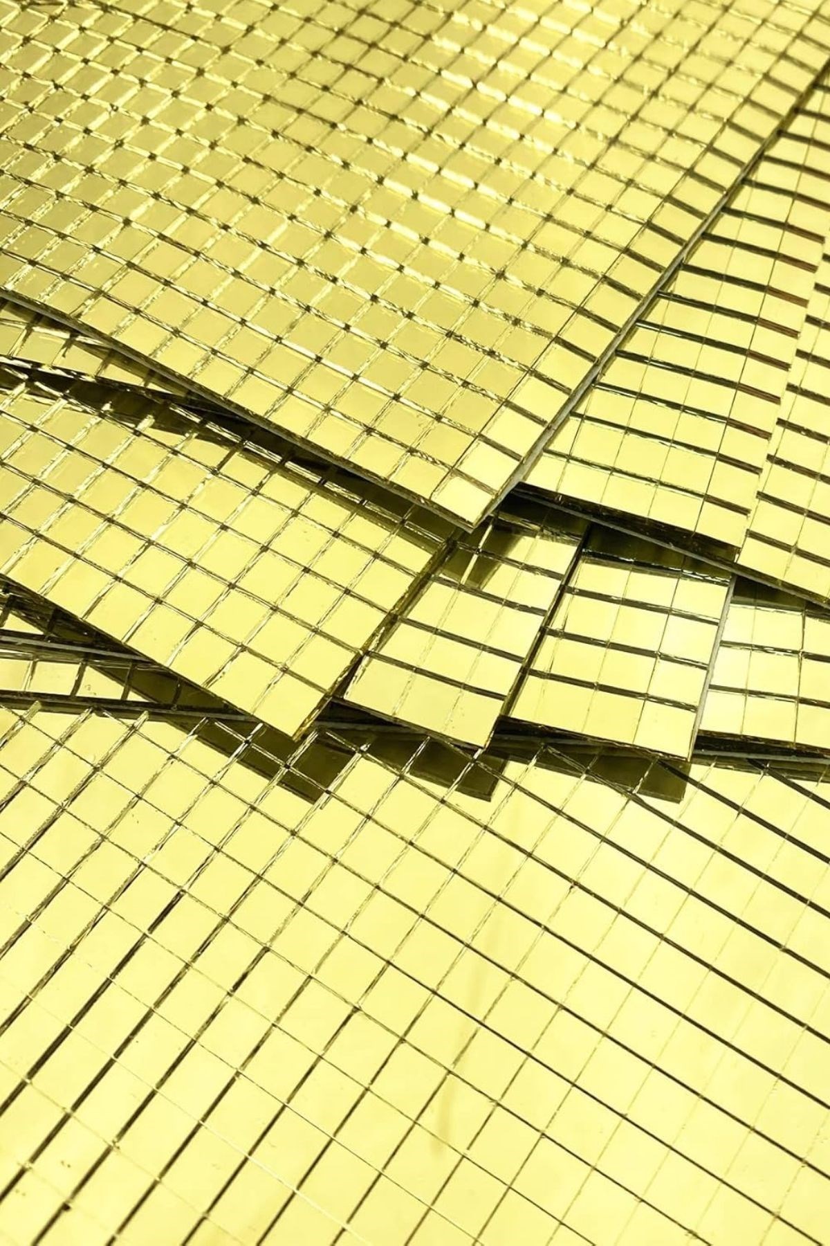 Şık ve Parlak Tasarım: Altın renkli cam mozaik dokusu, aynalı görünümüyle ışığı yansıtarak mekânınıza modern ve lüks bir hava katar.