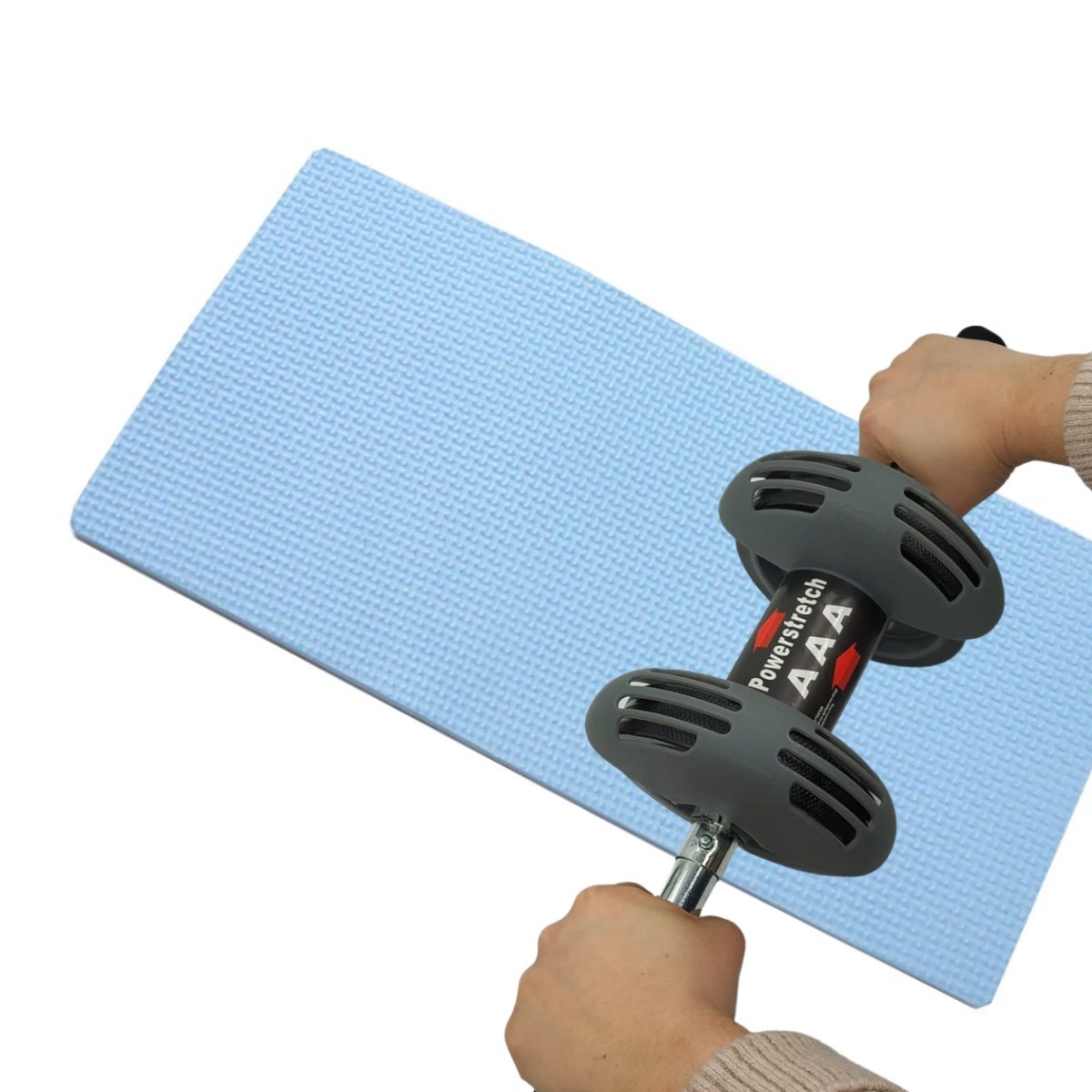 AB Power Streç Silindirimiz, sert veya ahşap zeminlerde veya evde veya spor salonunda halı üzerinde çalışırken dizlerinizde oluşacak agrıdan koruyan yumuşak bir diz pedi içerir