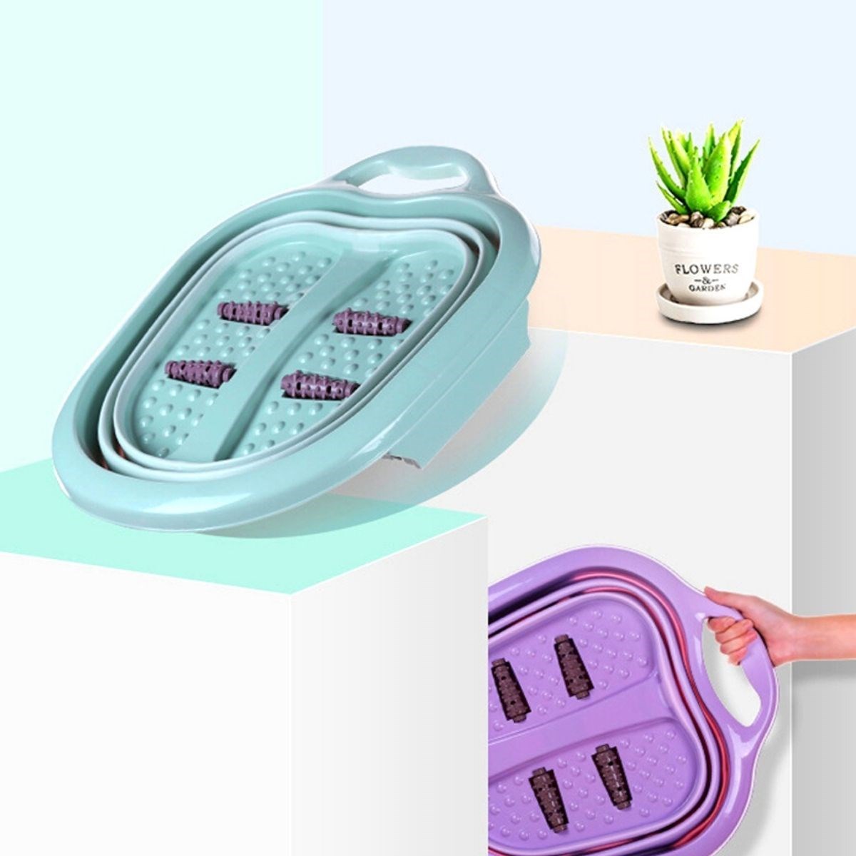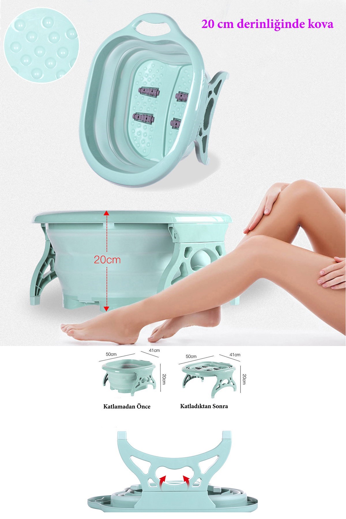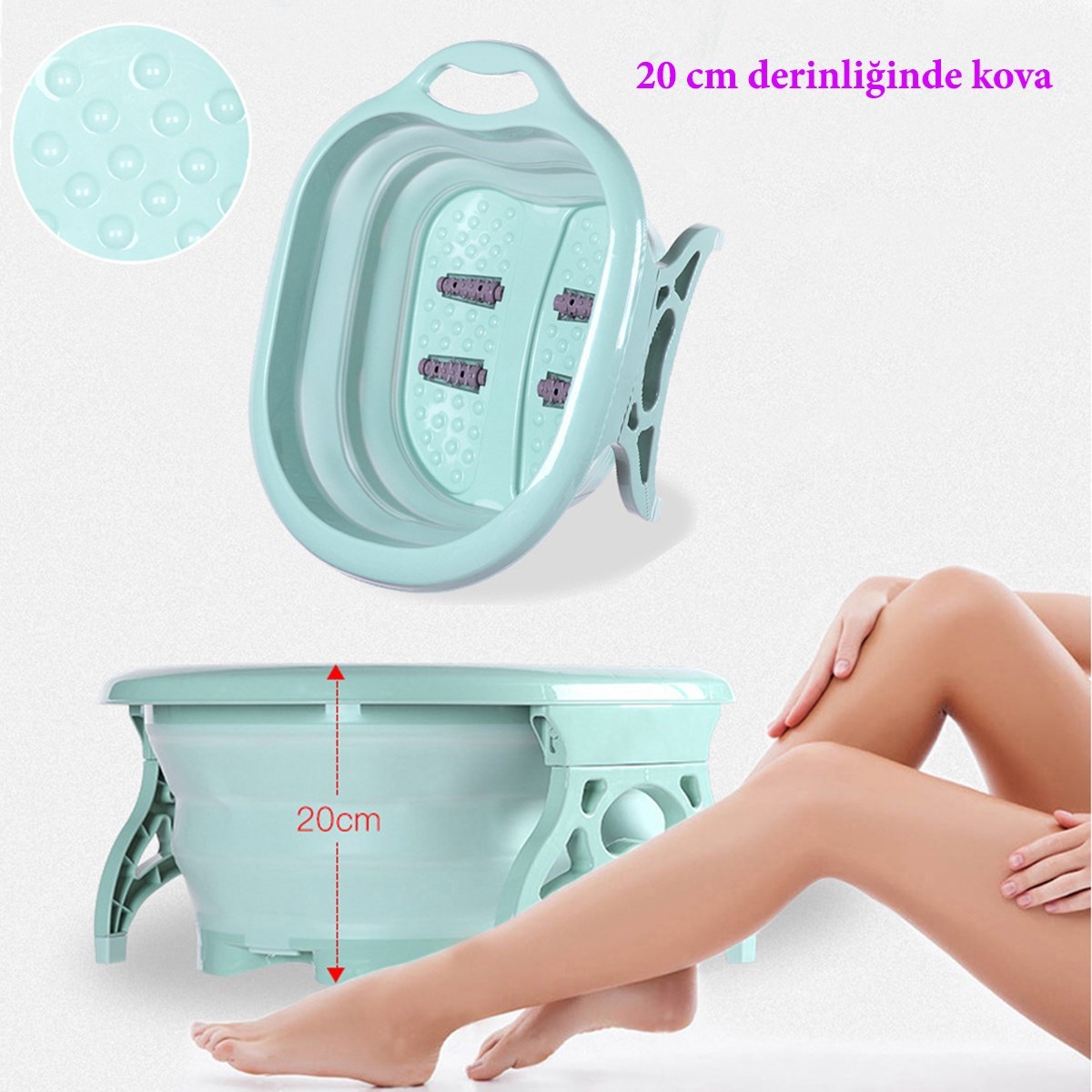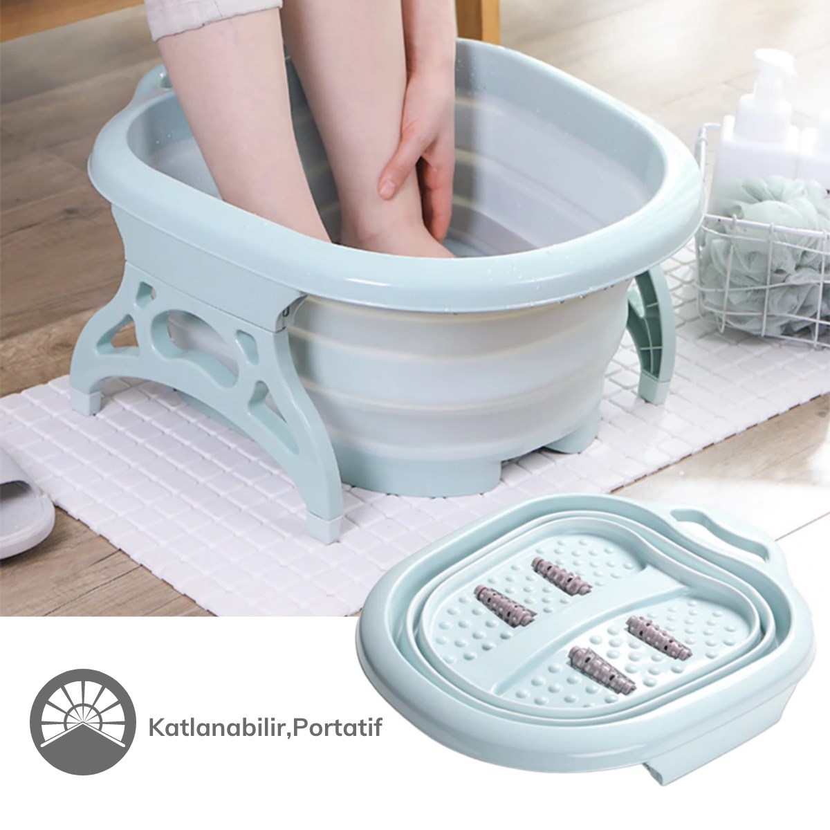 BUFFER® Katlanabilir Portatif 4 Masaj Toplu Yorgun Ayak Banyosu Küveti