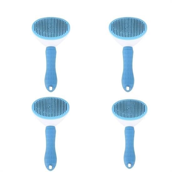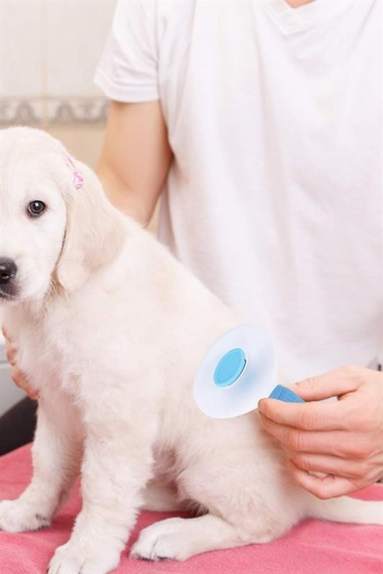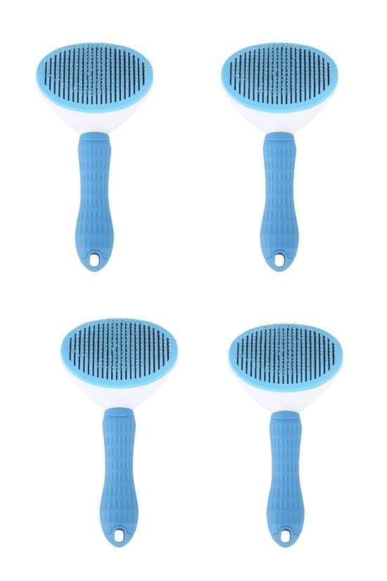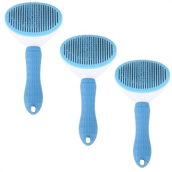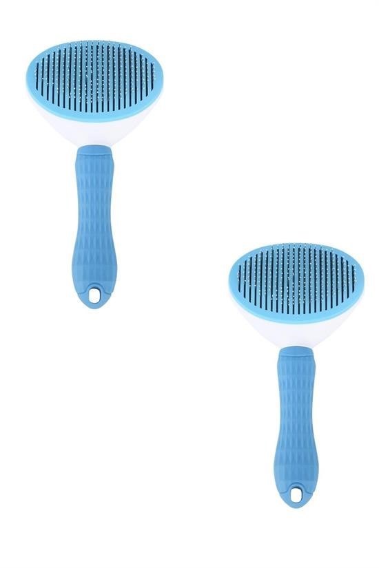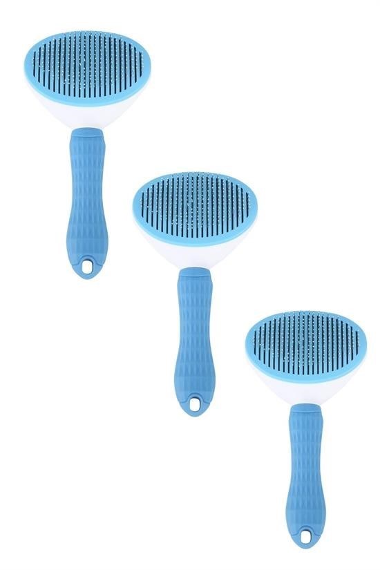 BUFFER® Kedi Köpek Tüy Toplayıcı Kendini Temizleyebilen Ergonomik Saplı Kullanımı Rahat Kaymaz Evcil Hayvan Tarağı Mavi