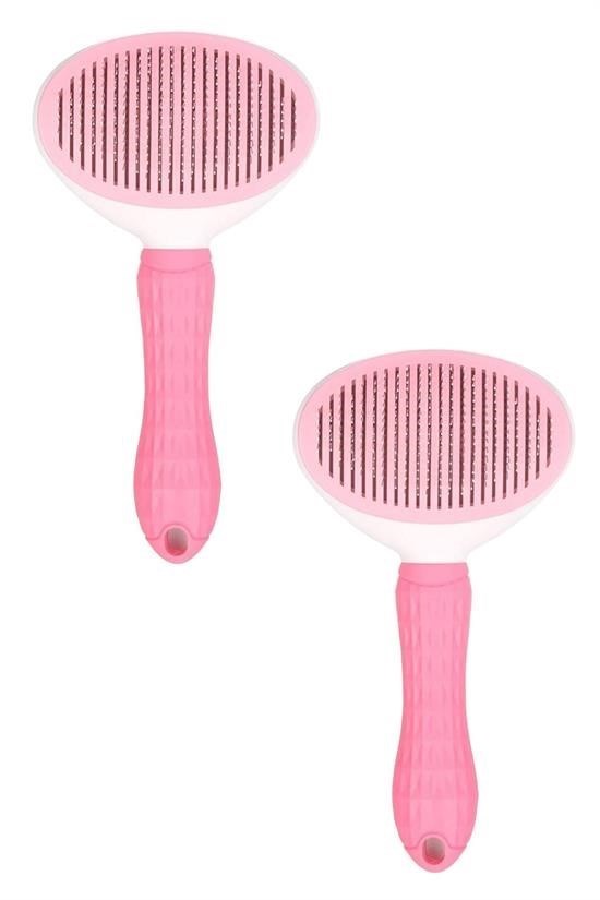 BUFFER® Kedi Köpek Tüy Toplayıcı Kendini Temizleyebilen Ergonomik Saplı Kullanımı Rahat Kaymaz Evcil Hayvan Tarağı Pembe