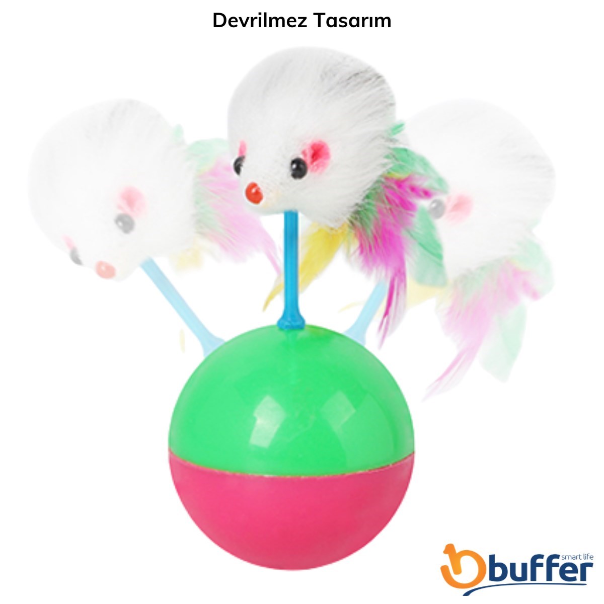 Hacı yatmaz modeli oyuncakta peluş renkli tüyler ve fare şekli kullanılarak kediler için ekstra bir ilgi çekici ürün haline gelmiştir