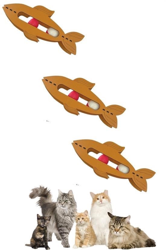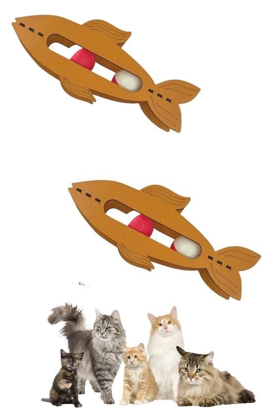 Bu ahşap balık oyuncağının içinde yuvarlanan iki topun sesi kedileri meraklandırır ve dikkatlerini toplar