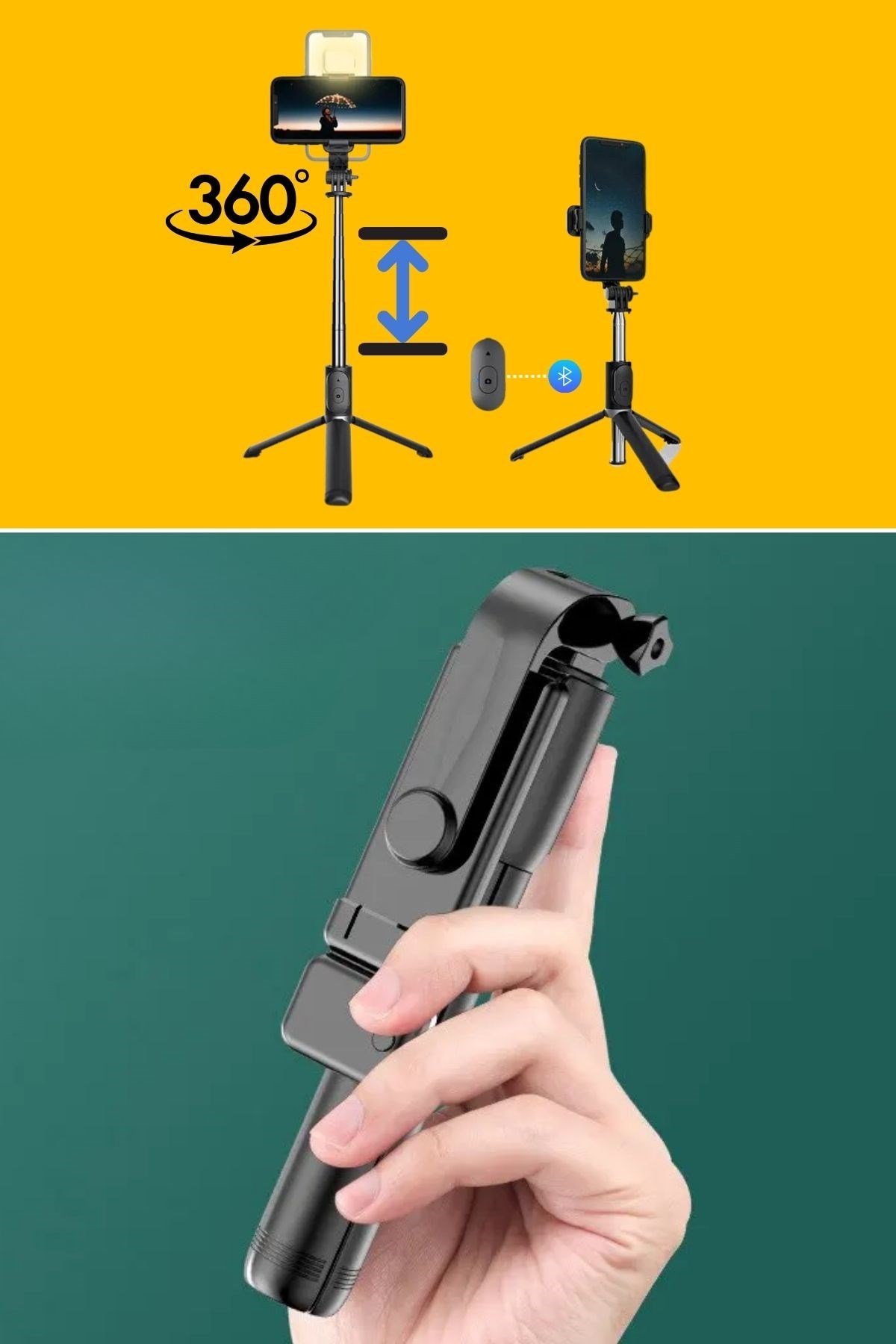 BUFFER® Kendiliğinden Işıklı Masaüstü Tripod Olabilen Telefon Tutuculu Kablosuz Kumandalı Selfie Çubuğu