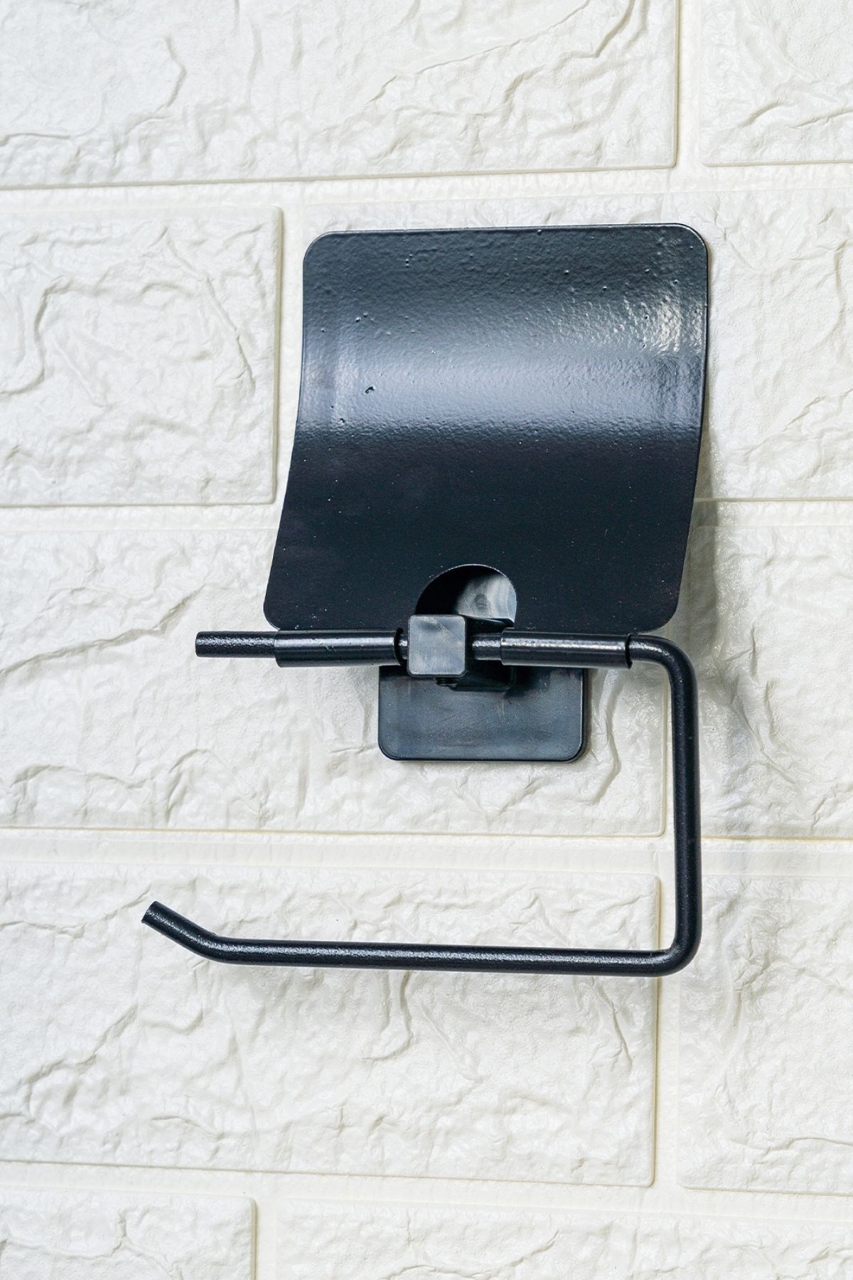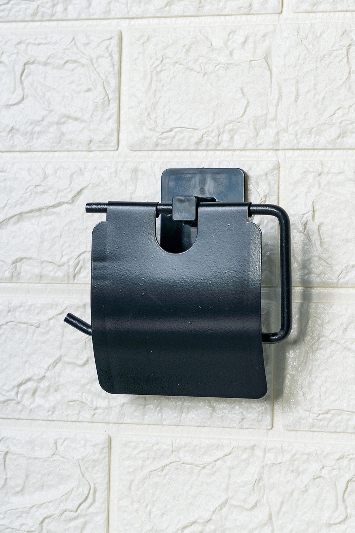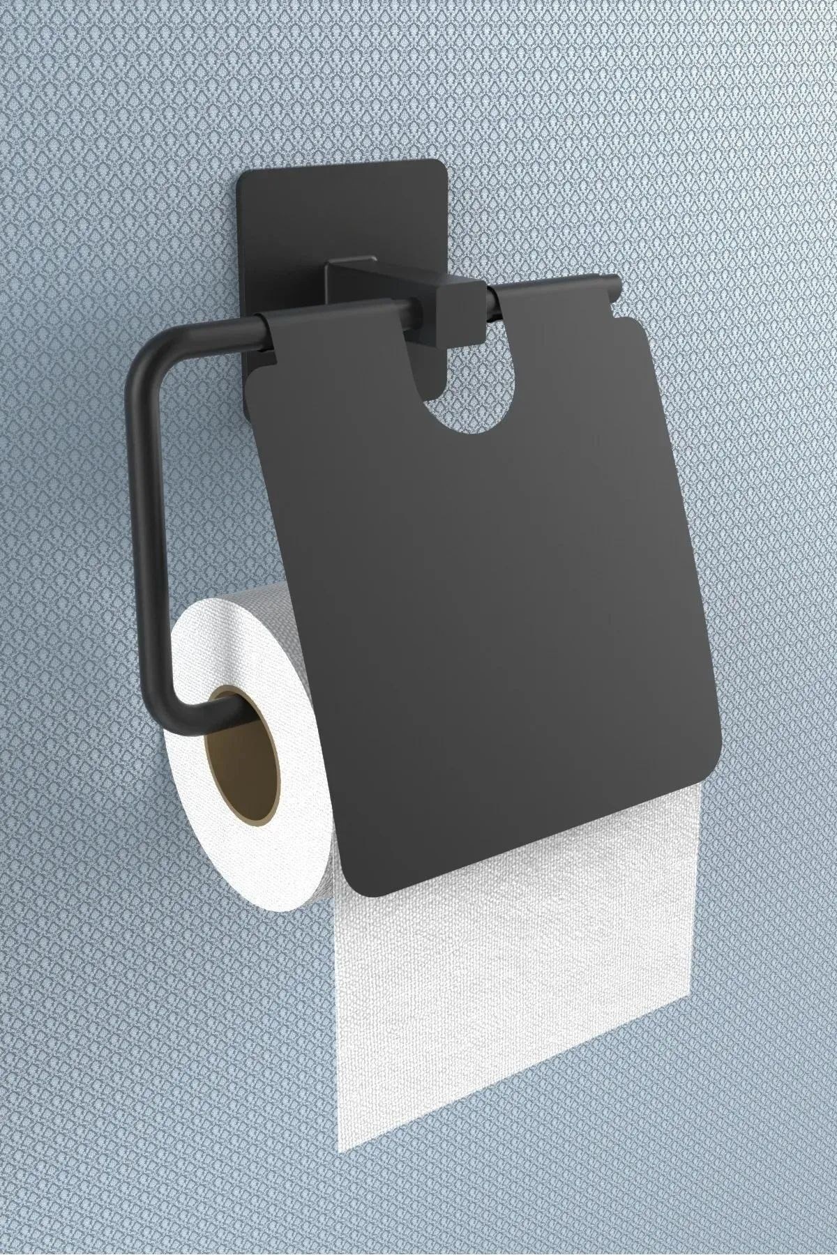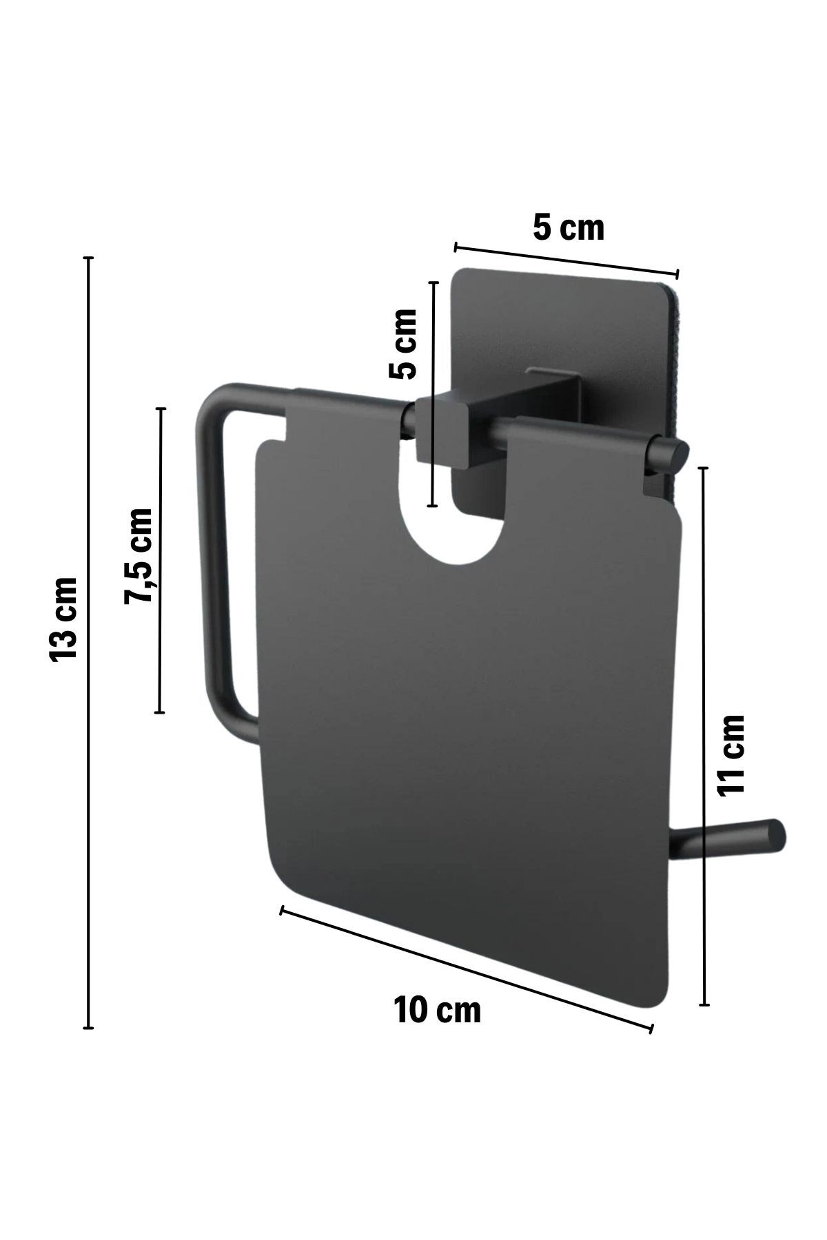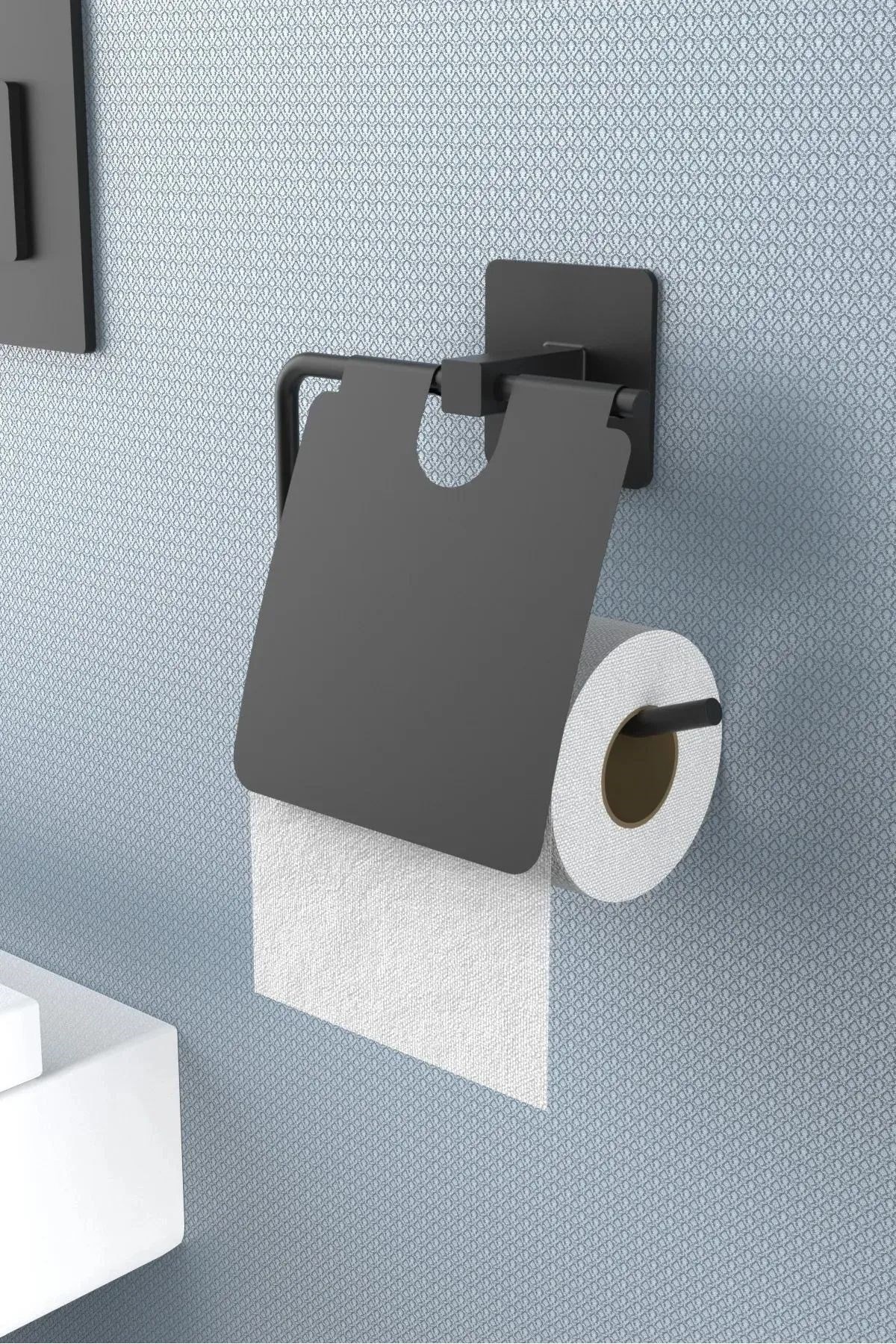 BUFFER® Kendiliğinden Yapışkanlı Siyah Paslanmaz Metal Kapaklı Tuvalet Kağıtlığı Aparatı