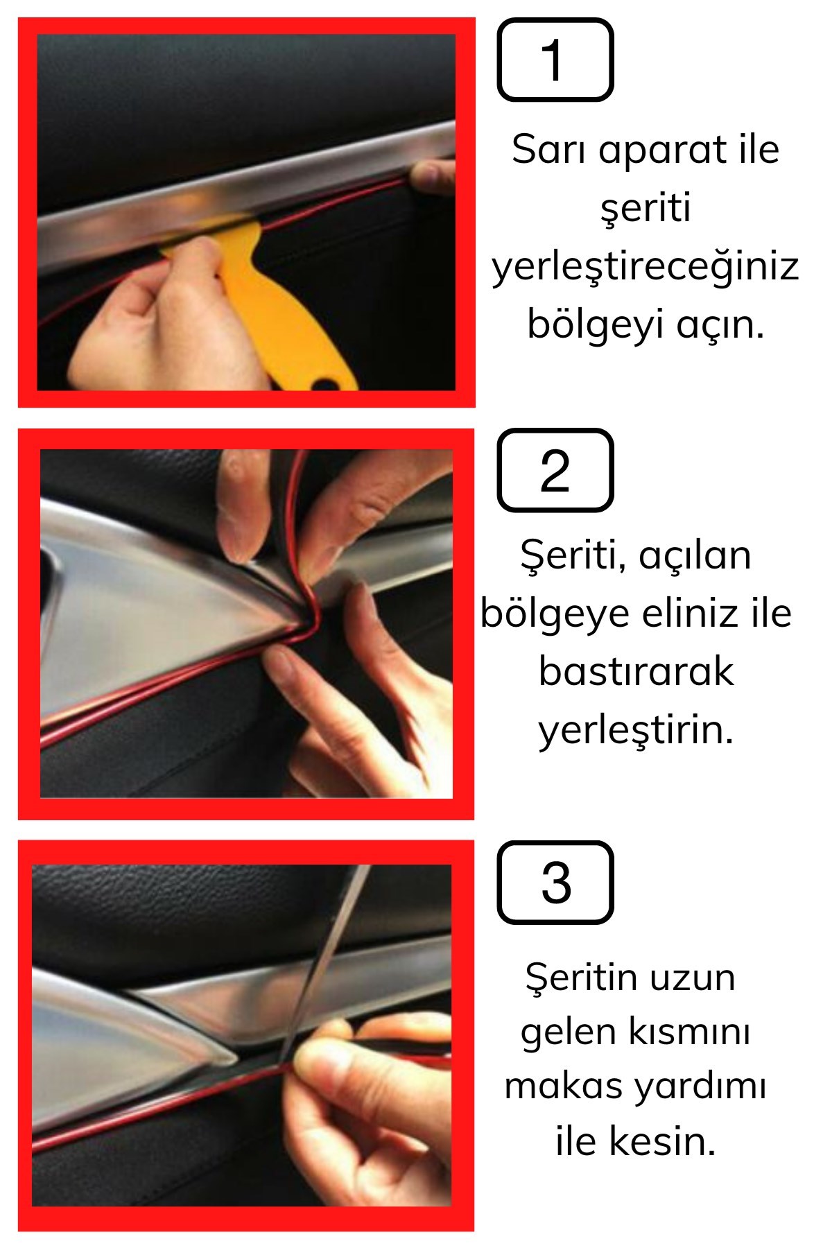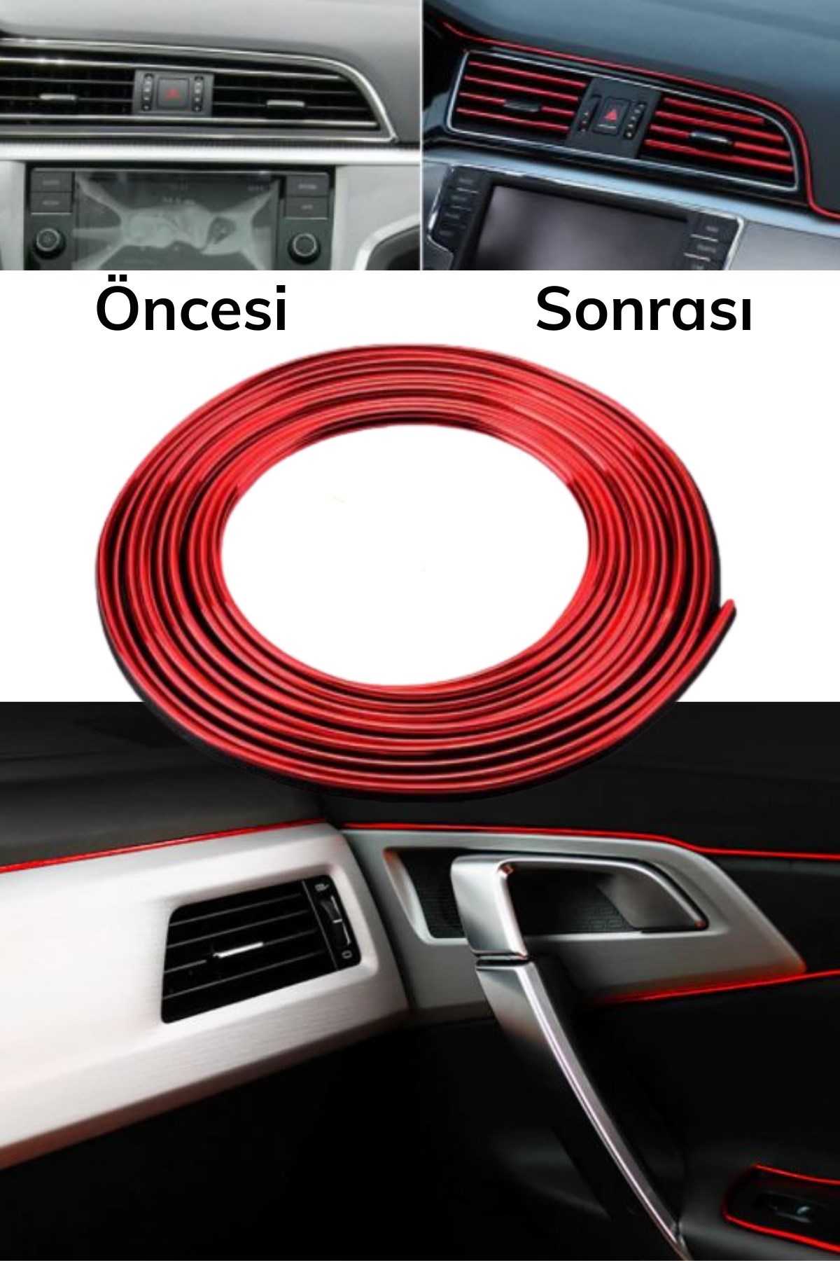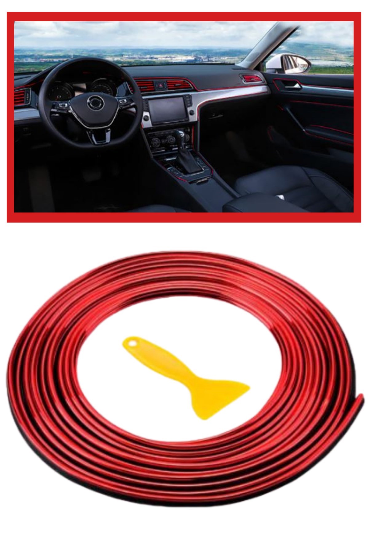 BUFFER® Kırmızı Araba OtoTrim Dekorasyon Şeridi Kauçuk Elastik Kolay Kurulum 5 metre Şerit Bant
