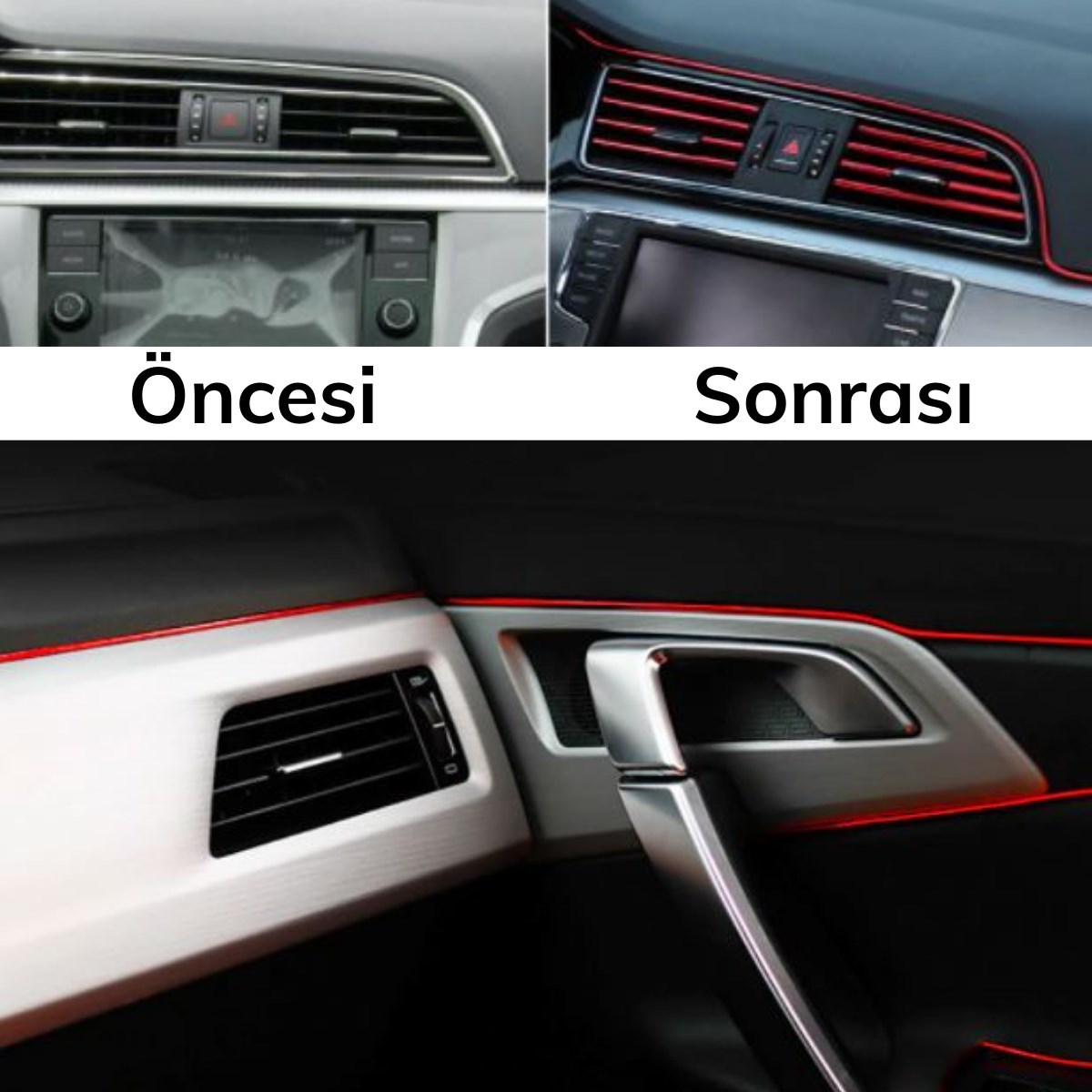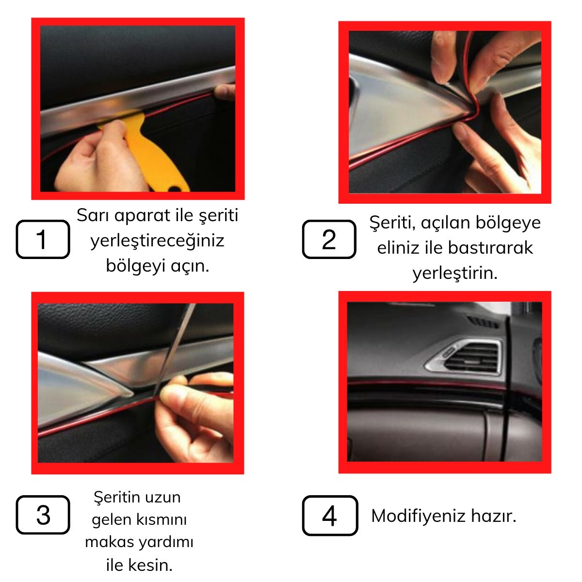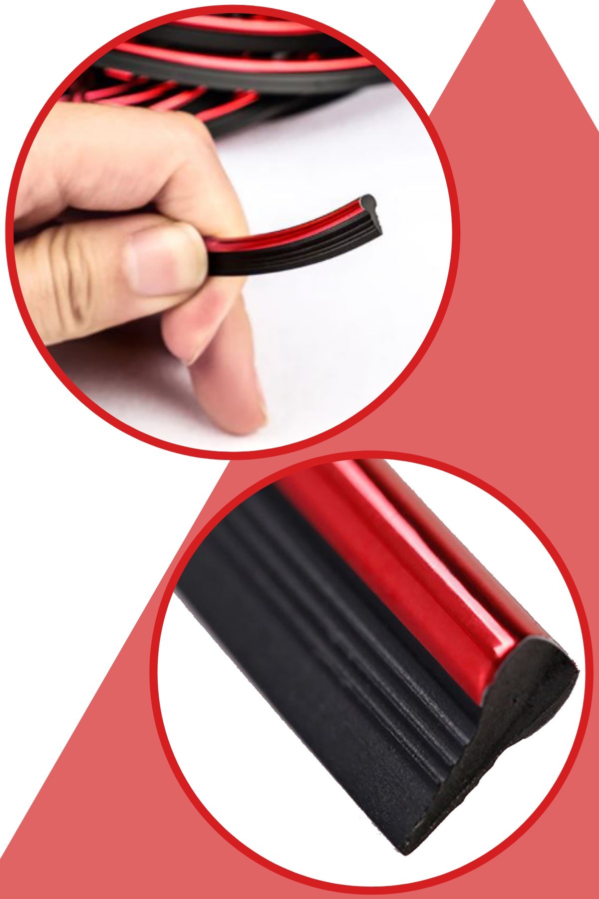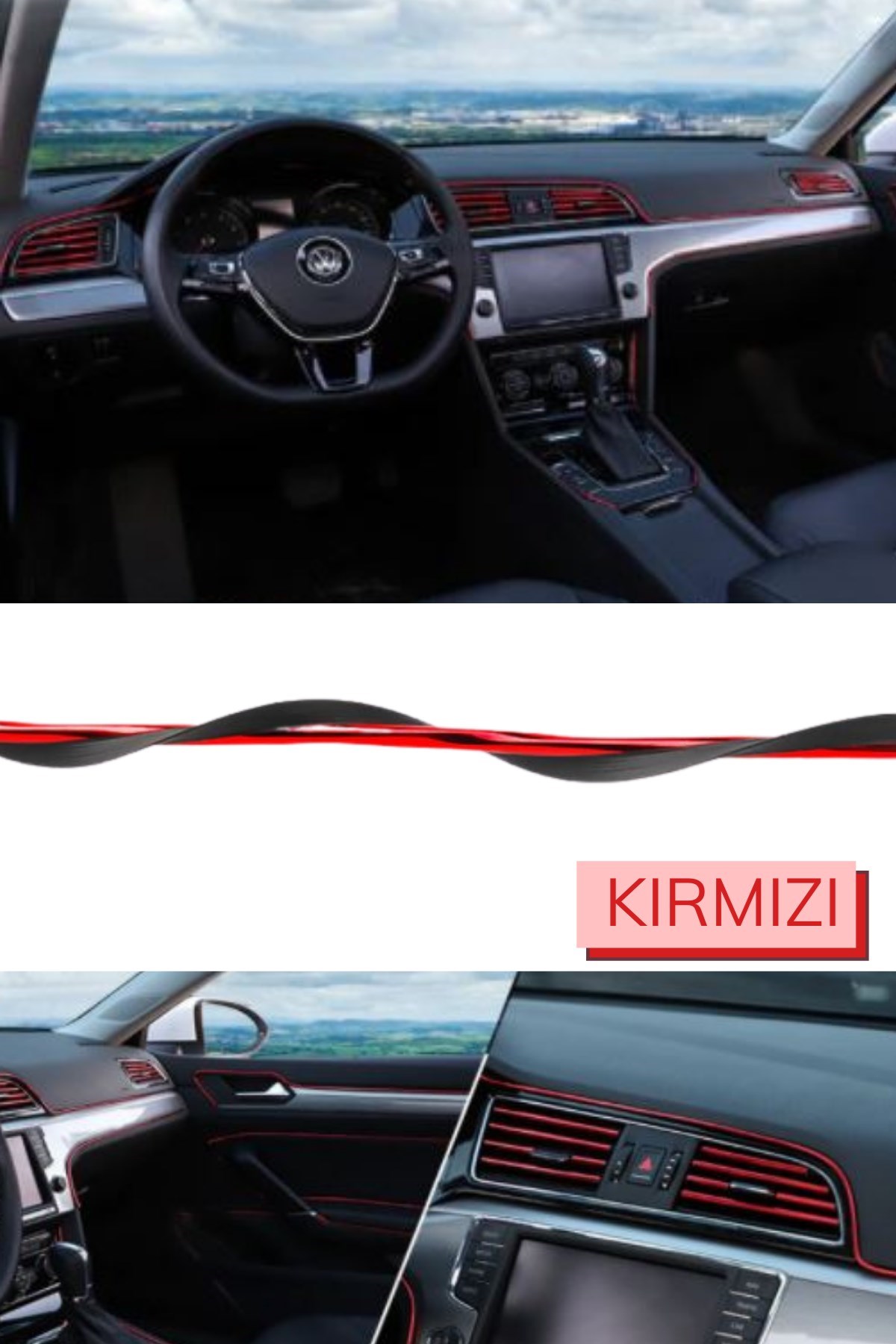BUFFER® Kırmızı Araba OtoTrim Dekorasyon Şeridi Kauçuk Elastik Kolay Kurulum 5 metre Şerit Bant