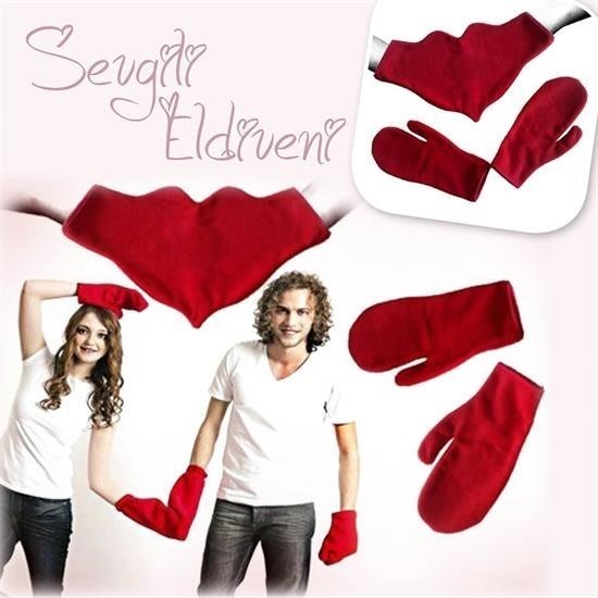 Kırmızı Renk Sevgili Eldiveni ile elleriniz hem ısınacak hem de ayrılmayacak