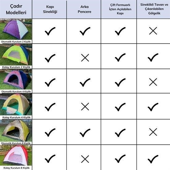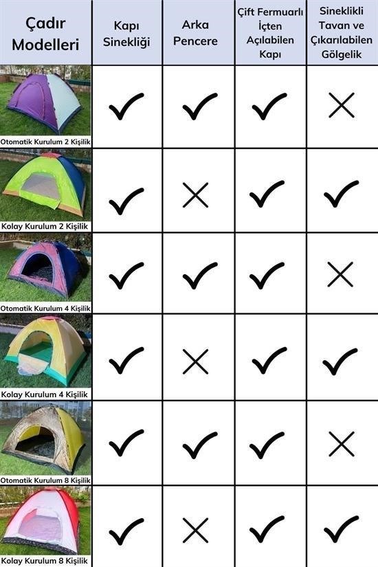 Yıllardır doğa tutkunlarının vazgeçilmezi olan kolay kurulum kamp çadırı ayrıca avcılar, dağcılar, izciler ve gençlik festival takipçilerinin vazgeçilmezi olmuştur