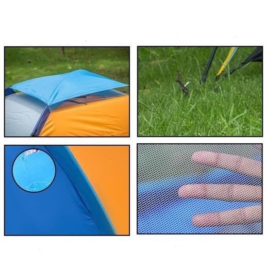 Bu çadırlar sayesinde sıcak yaz gecelerinde terlemeden rahat bir uyku uyuyabilir ve aynı zamanda kapı sinekliği sayesinde sivri sineklerden korunabilirsiniz Pratik kamp çadırı, kullanımı ve kurulum oldukça kolaydır Sadece 5 dakika gibi kısa bir sürede çadırınızı kurabilir ve yaklaşık aynı süre içinde toplayabilirsiniz Tavanı polyester su geçirmez kumaştan üretilmiştir Çadırın çıtaları 7mm esnek fiberglass çubuklardan imal edilmiştir