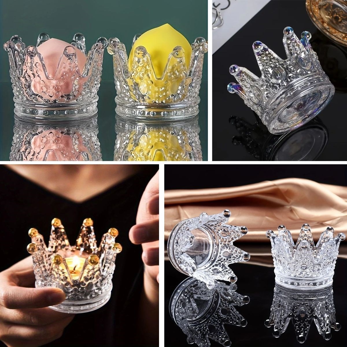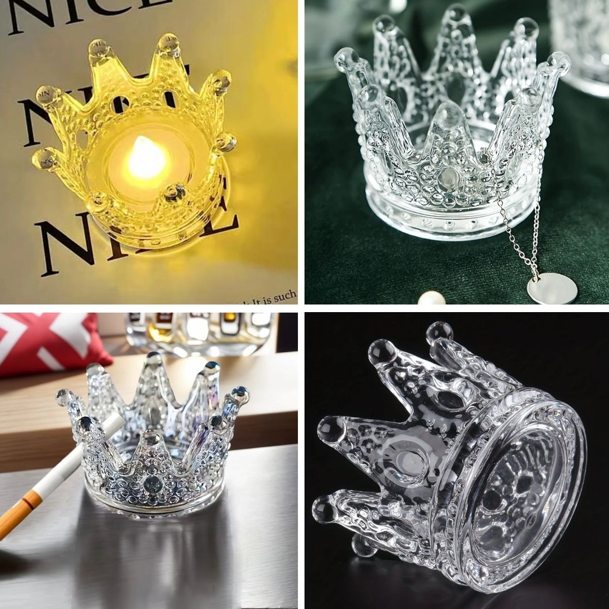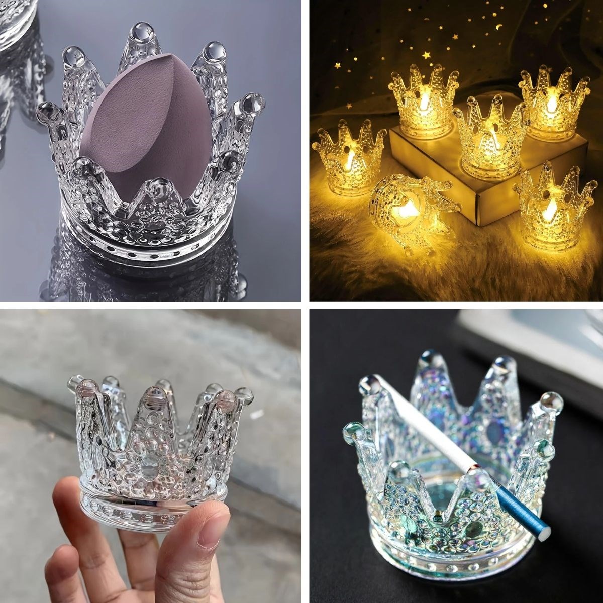 🎉 BUFFER® Kral Tacı Model Mini Mumluk, Küllük, Lokumluk – Çok Amaçlı Şeffaf Kase