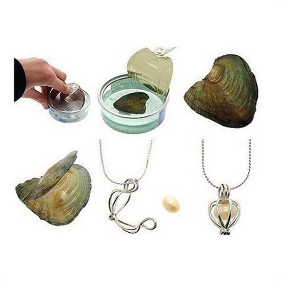 İstiridye Kabuğu içinde inci kolye seti, gerçek ve doğal ortamından