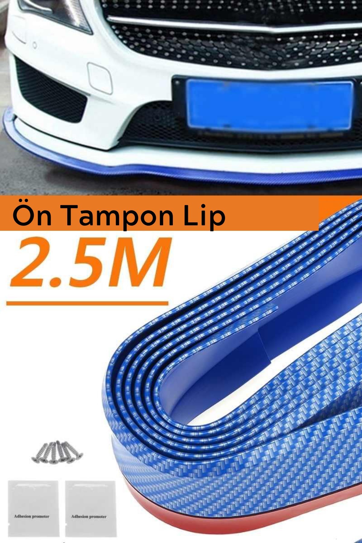 2,5 Metre Araba Oto Ön Tampon Koruyucu Kauçuk Mavi Renkli Pratik Tampon Şerit Bant Döşeme Kiti