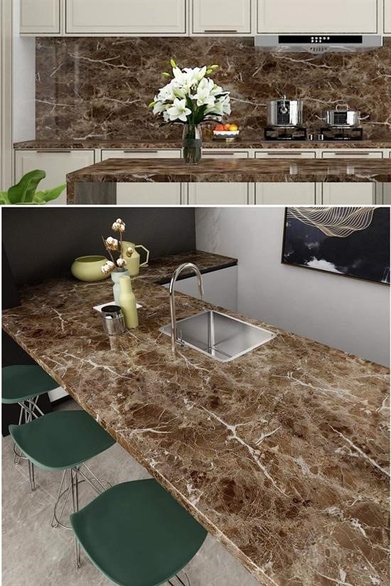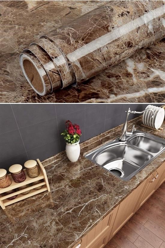 Granit mermer görünümlü yapışkan duvar kağıdını istenen yüzeye yapıştırabilirsiniz