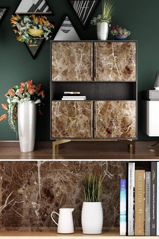 Mermer görünümlü folyoyu dilediğiniz yere kolayca yapıştırabilir ve sonrasında leke olmadan ürünü çıkarabilrsiniz