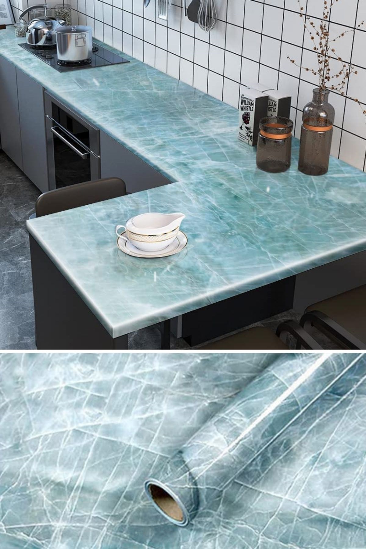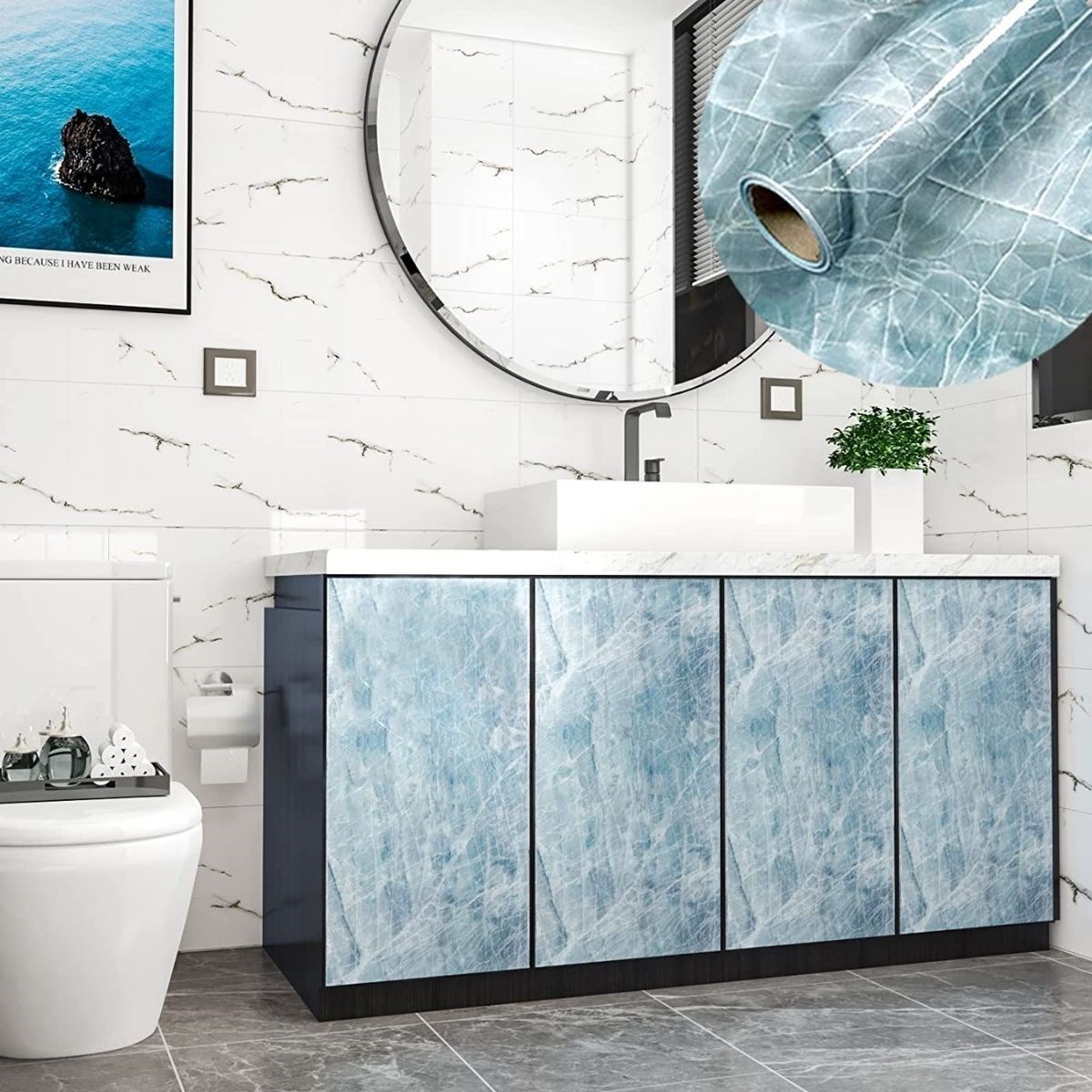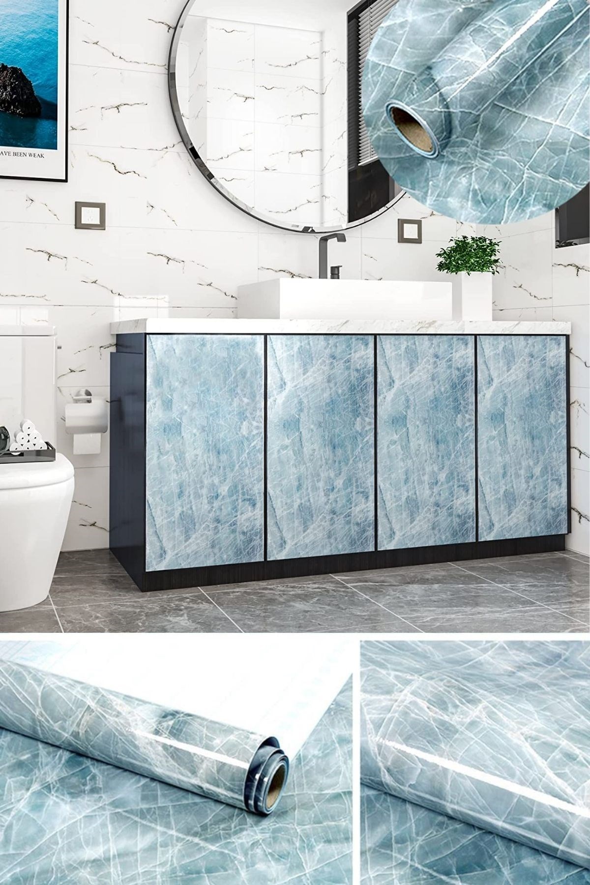 Mermer görünümlü folyoyu dilediğiniz yere kolayca yapıştırabilir ve sonrasında leke olmadan ürünü çıkarabilrsiniz