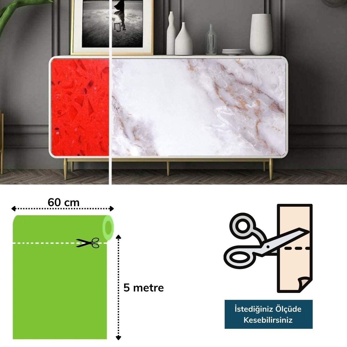 1 adet x Mermer Desenli Masa Tezgah Mutfak Duvar Kağıdı Su Geçirmez Yapışkanlı Folyo Sticker 60cm*5mt