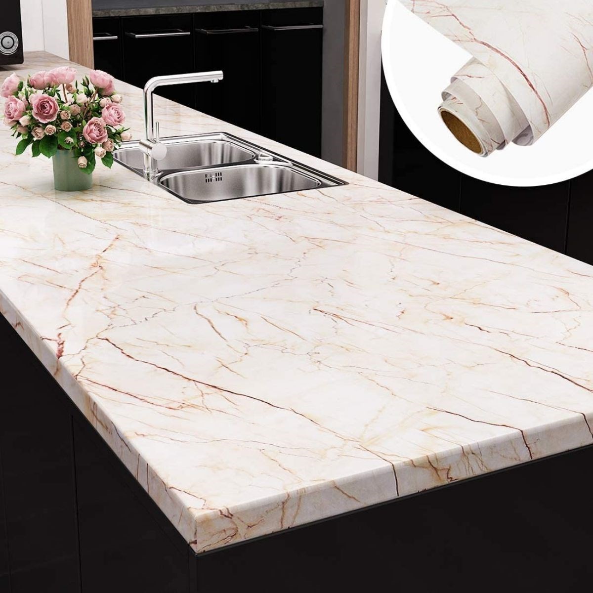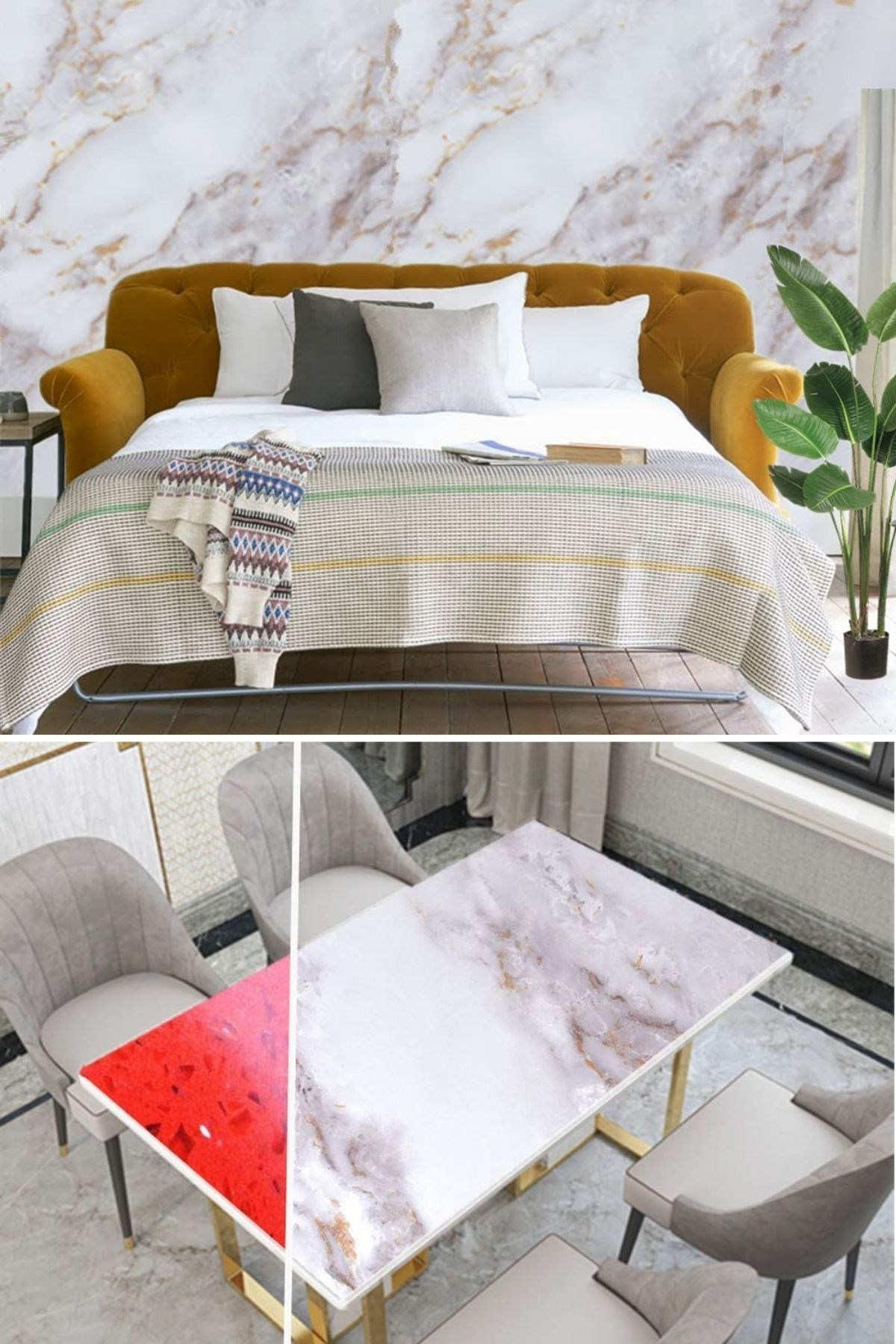 Granit mermer görünümlü yapışkan duvar kağıdını istenen yüzeye yapıştırabilirsiniz