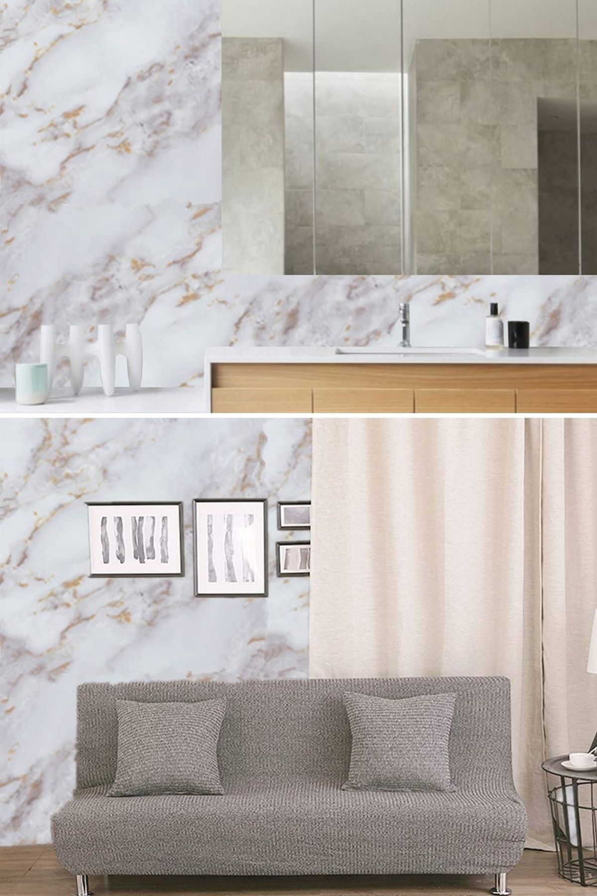 Mermer desenli kaplama duvar kağıdı yapışkanlı folyo ürünü su geçirmez ve ateş almaz özelliğe sahiptir