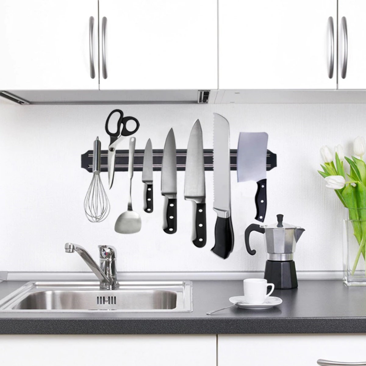 BUFFER® Mıknatıslı Paslanmaz Duvar Bıçak Askısı Standı 33 Cm Aparat