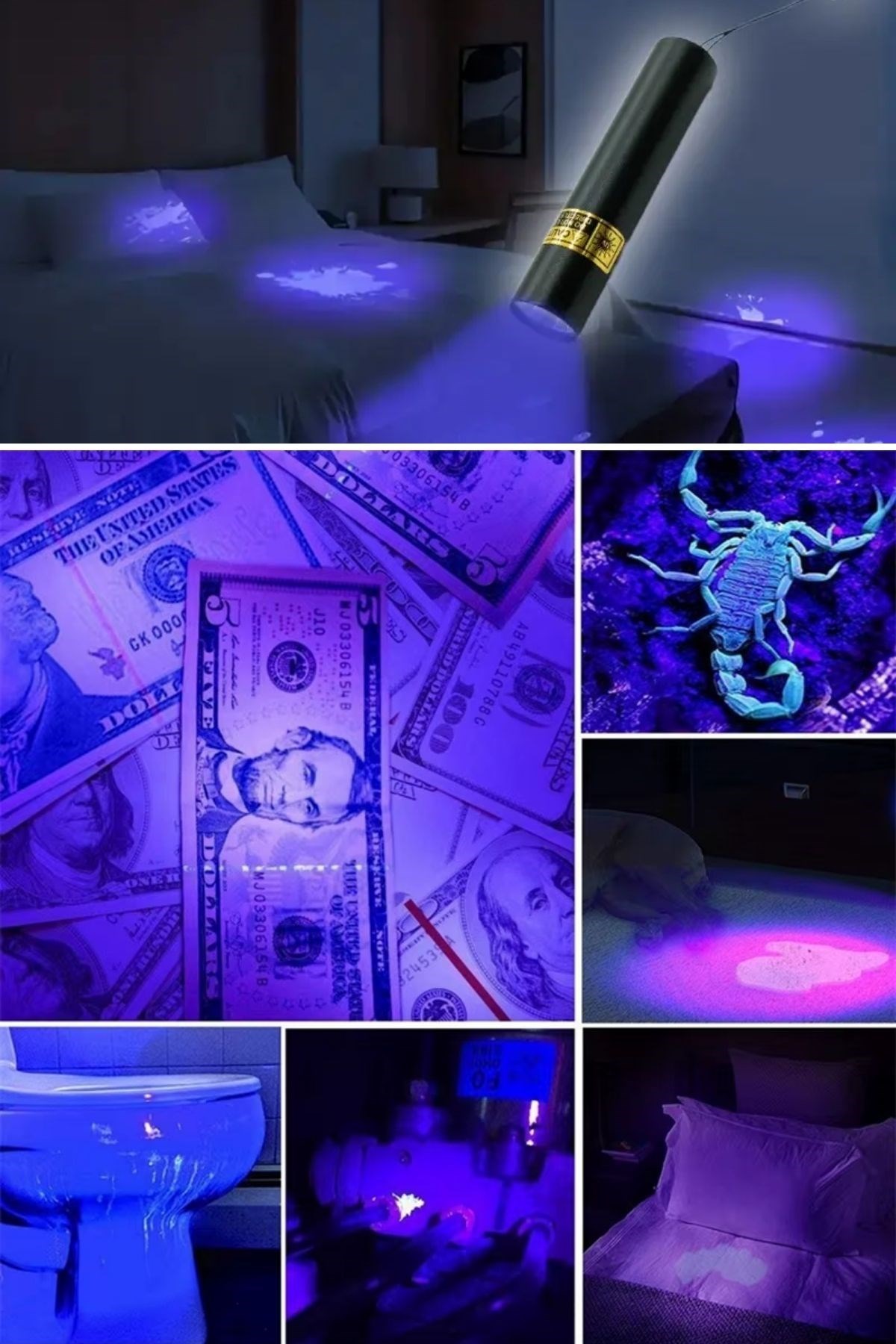 ✔ Güçlü UV Mor Işık – Sahte para, kimlik kartları, pasaportlar ve güvenlik şeritlerini aydınlatarak doğrulama yapar.