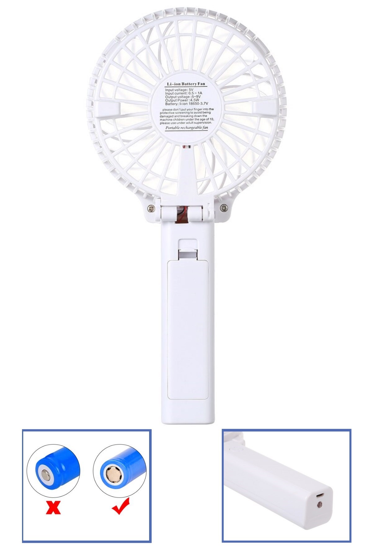 BUFFER® Mini USB Katlanır Taşınabilir Şarjlı El Fanı Beyaz