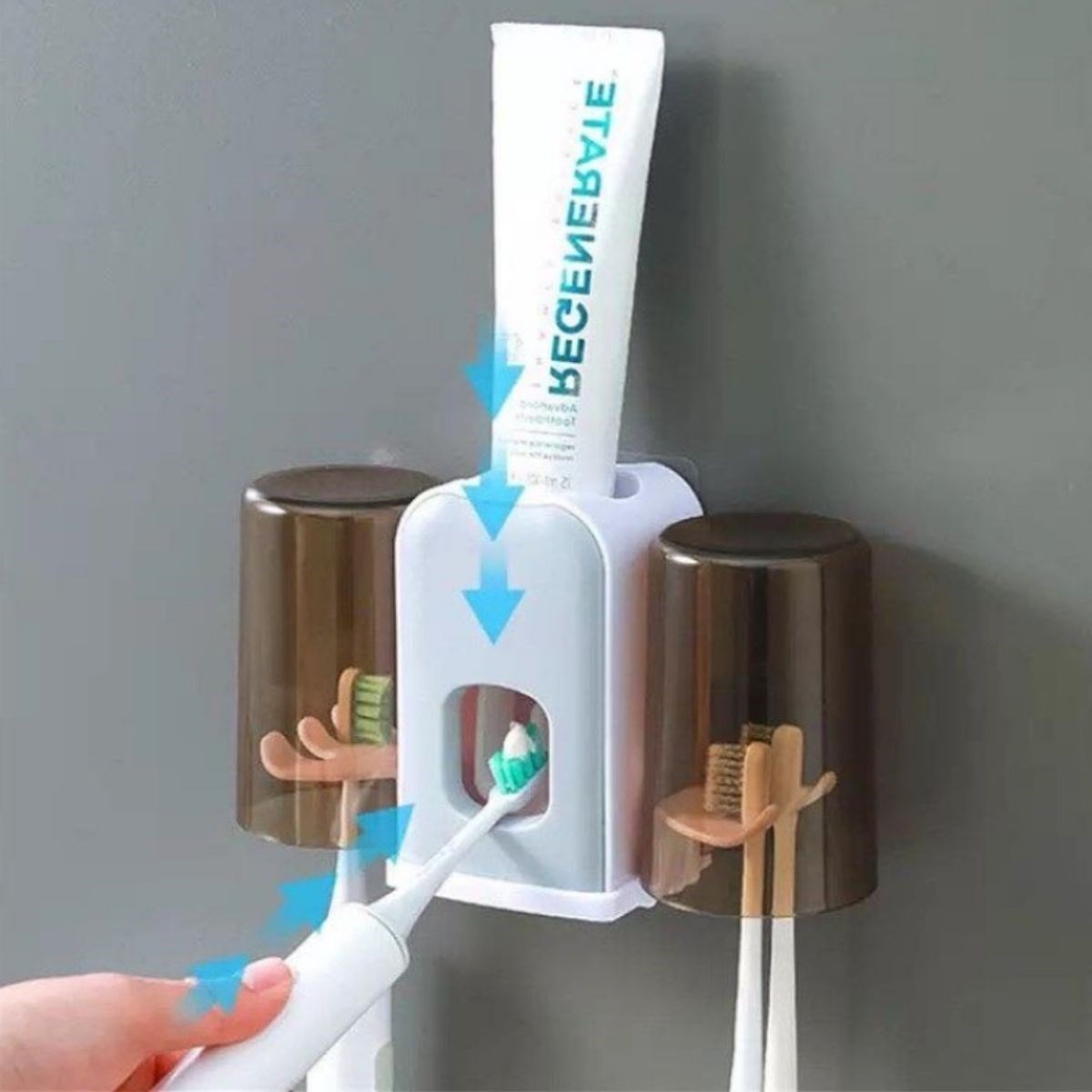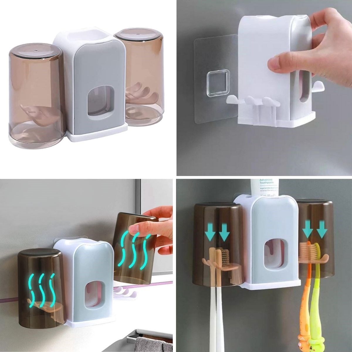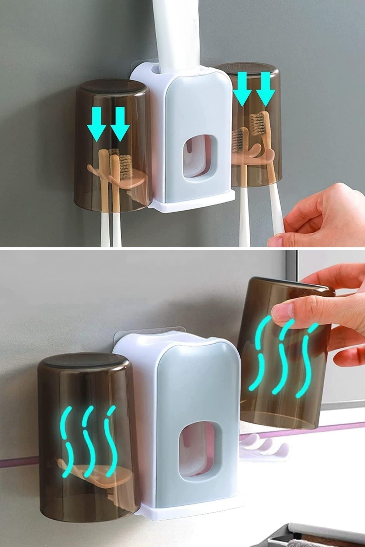 Montaj Gerektirmeyen Fayansa, Duvara Yapışabilen 2 Kupalı Steril Otomatik Diş Macunluk, banyo düzeninizi sağlamak ve diş bakım rutininizi kolaylaştırmak için tasarlanmış pratik ve hijyenik bir üründür. Bu ürün, diş macununu otomatik olarak sıkarak kullanım kolaylığı sağlar ve kupa tutucuları sayesinde diş fırçalarınızı düzenli ve temiz bir şekilde saklar.