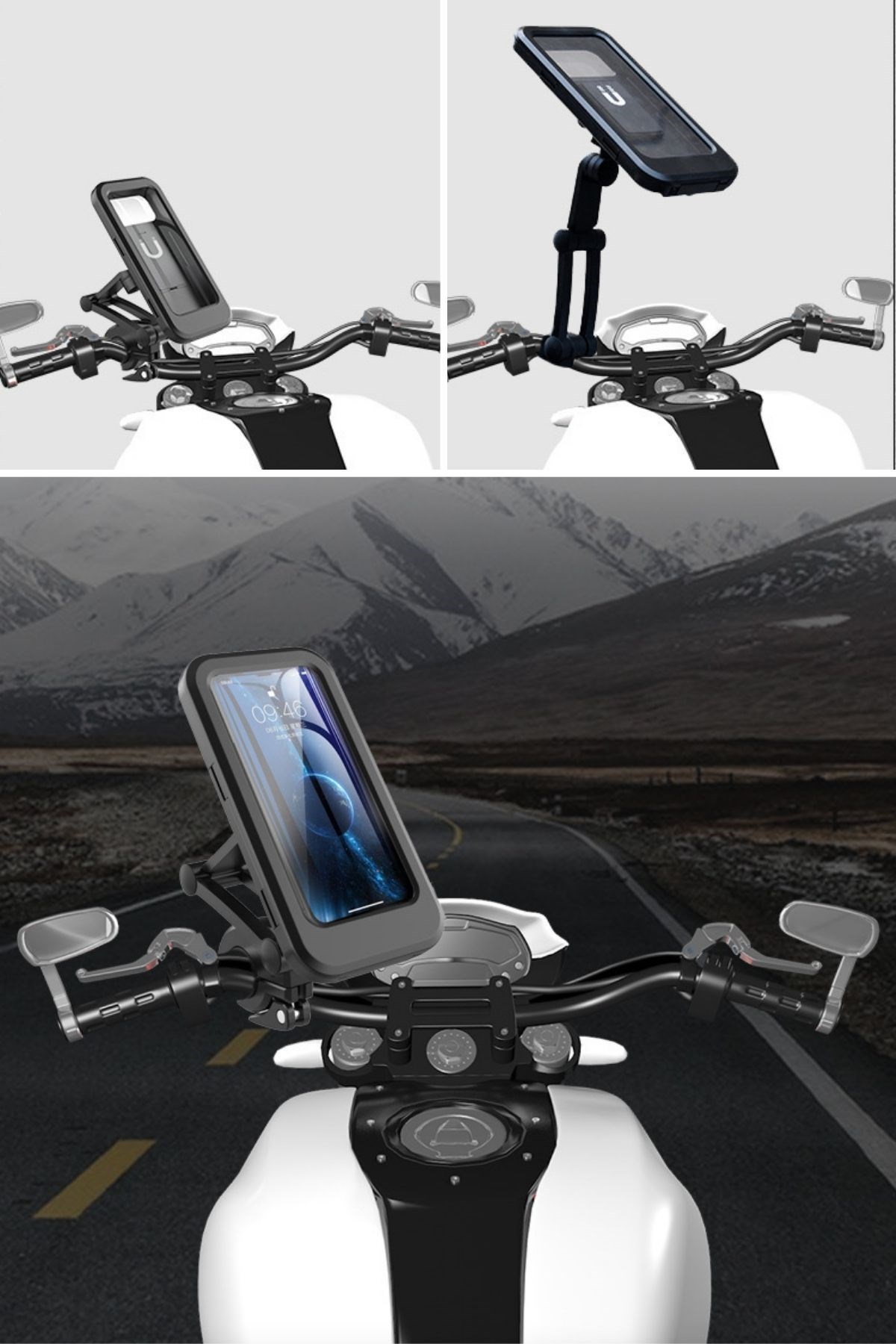 Motosiklet, Bisiklet, ATV Koluna Takılabilen 360° Dönebilir Su Geçirmez Telefon Tutacağı, açık hava sürüşlerinizde telefonunuzu güvende ve erişilebilir tutmanın en pratik yolunu sunar. İster motosiklet, ister bisiklet veya ATV kullanıyor olun, bu telefon tutacağı sayesinde telefonunuz her zaman elinizin altında ve koruma altında olacak.