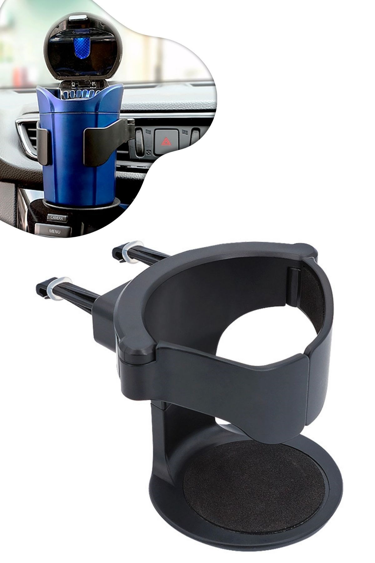Bu Oto Araç İçi Bardak Tutucu Çok Fonksiyonlu İçecek Tutacağı Bardaklık, seyahatlerinizde içeceklerinizi güvenli ve düzenli bir şekilde taşımanıza olanak sağlar. Pratik tasarımı ve dayanıklı malzemesiyle günlük kullanımınızı kolaylaştırır.