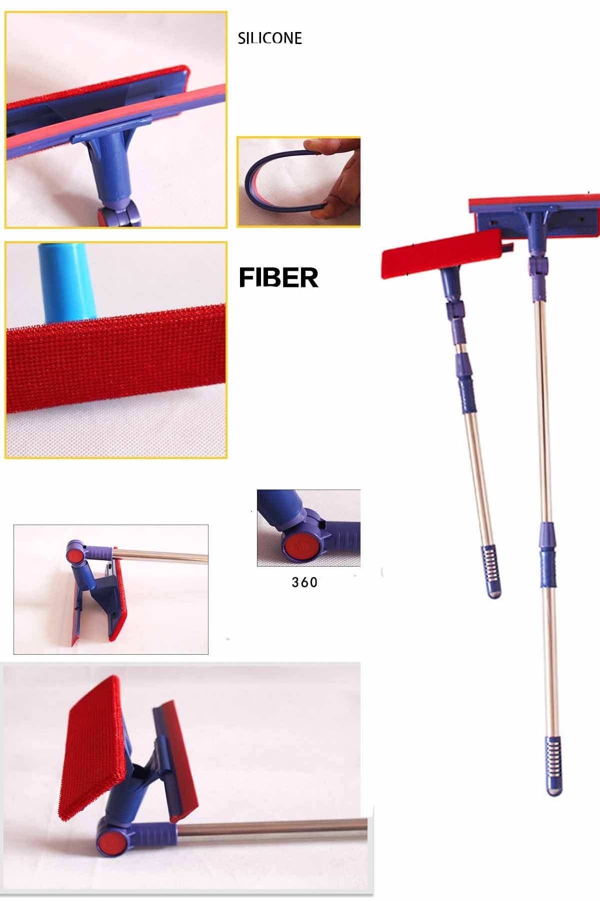 Teleskopik Çekçekli Oynar Başlıklı Cam Silme Aparatı